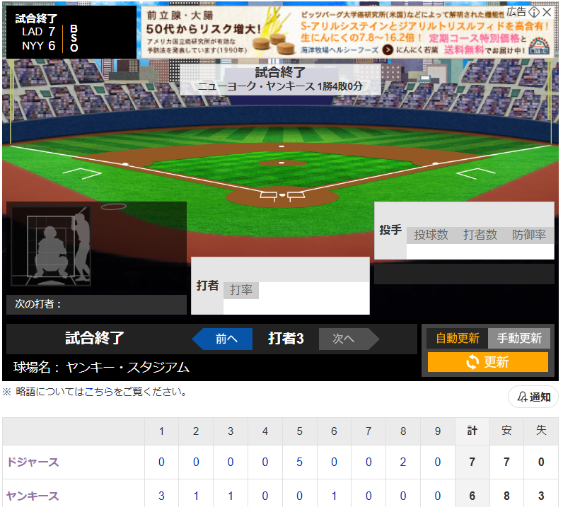ドジャース7-6ヤンキース
