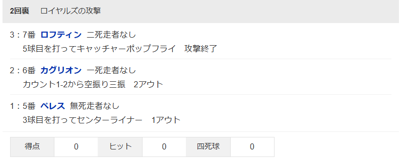 大谷翔平選手 投手成績 2回7人