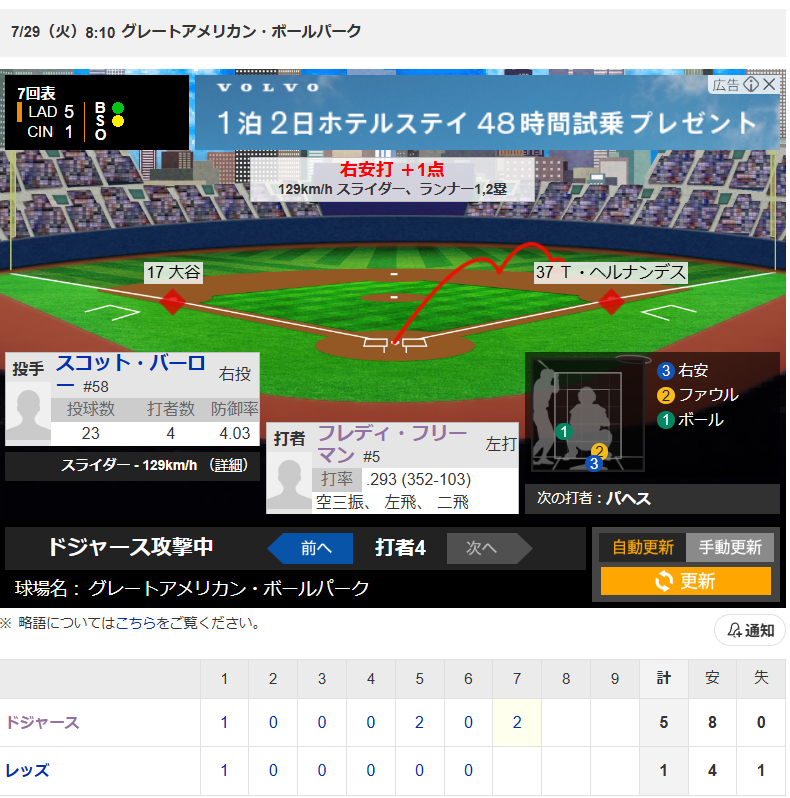 フレディ・フリーマン選手  右安打 +1点