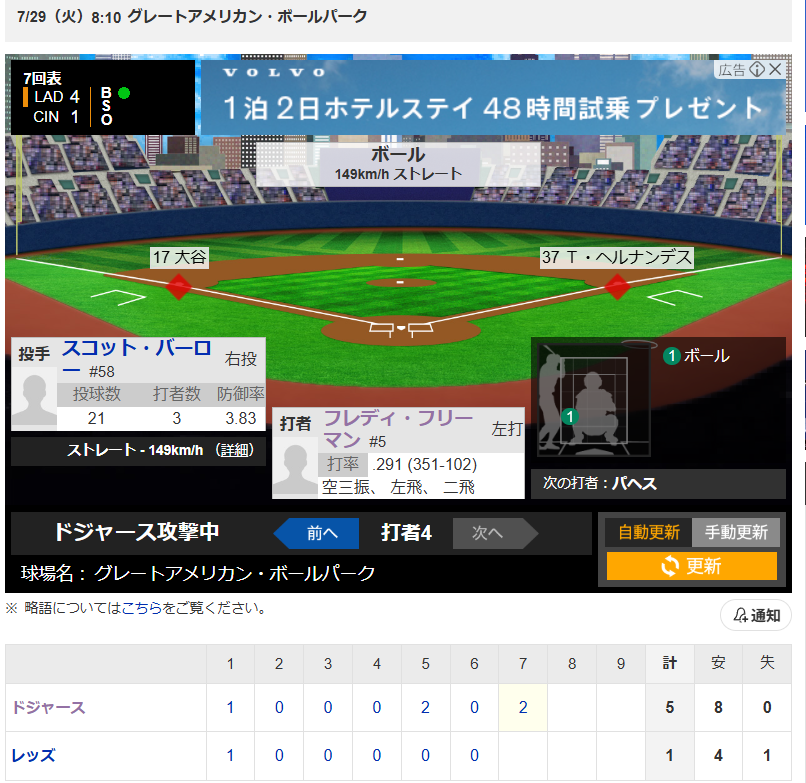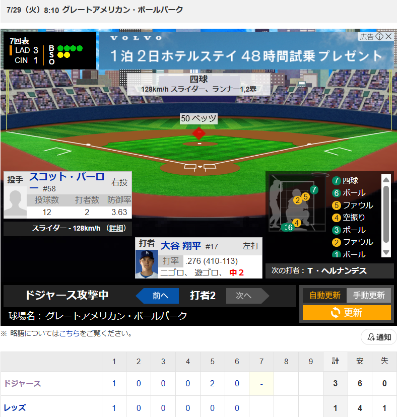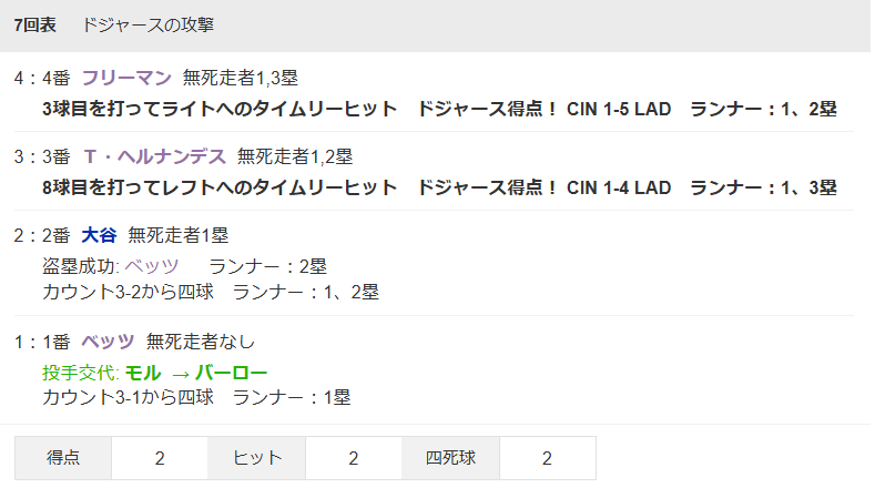 大谷翔平選手 第四打席 四球
