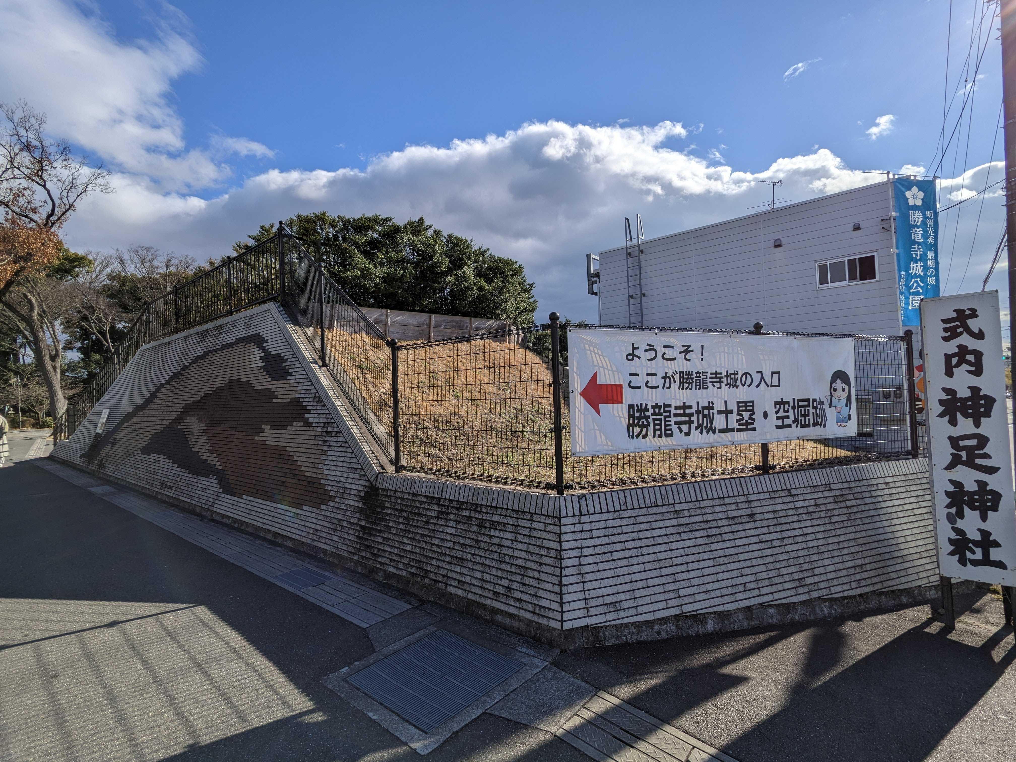 勝龍寺城を訪れてきました。公園には無料の駐車場があり、約6台ほどの小規模ながら車での訪問も可能です。城名は、かつて近隣に存在した「勝龍寺」に由来しており、その寺の名にちなんで「勝龍寺城」と呼ばれるようになったと伝えられています。現在は勝龍寺城公園として整備され、石垣や土塁、空堀、水濠などの遺構が残されており、戦国時代の雰囲気を感じながら散策できる魅力的な史跡です。なお、土塁や空堀跡は公園からやや離れた場所にあるため、見落とさずに訪れることをおすすめします。また、勝龍寺城は細川藤孝による大改修が行われたことで知られ、さらに細川忠興とガラシャ夫妻の新婚時代の居城としても有名です。歴史ロマンを味わえるスポットとして、多くの人に親しまれているとの事です。~2023年1月4日~