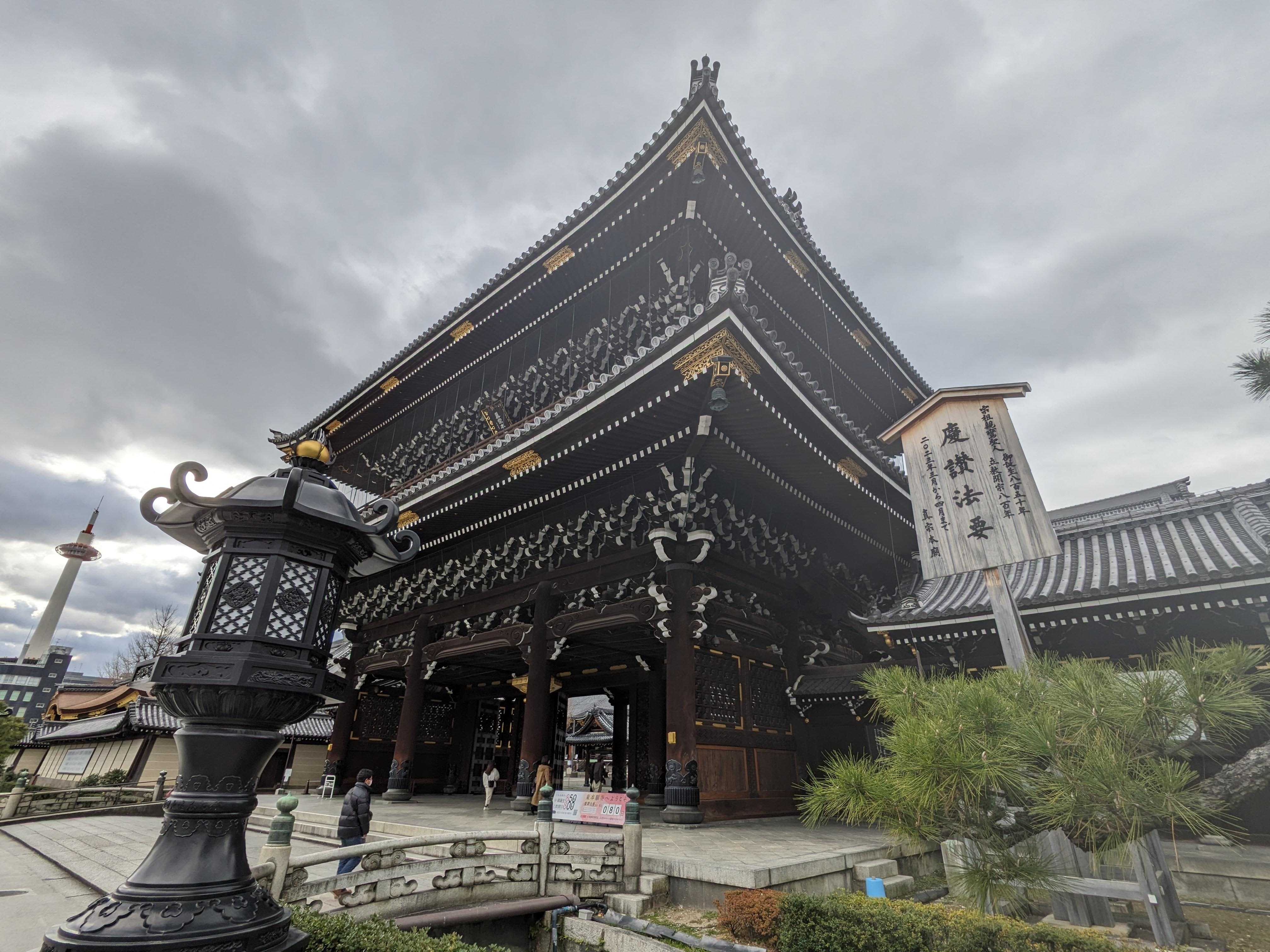 東本願寺を訪れてきました。東本願寺は京都駅に近く、真宗大谷派の総本山として知られ、通称「お東さん」と呼ばれ親しまれている寺院です。広々とした境内と荘厳な建築が大きな魅力となっています。その名称は、西本願寺に対して東側に位置することに由来しており、歴史的背景から別の寺院として歩みを進めることになったとされています。見どころは世界最大級の木造門として名高い御影堂門をはじめ、壮麗な御影堂や阿弥陀堂などが挙げられ、迫力ある建築と落ち着いた雰囲気が訪れる人を惹きつけます。なお、境内には無料駐車場がありません。京都駅から比較的近いため、歩いて訪れるのもおすすめです。