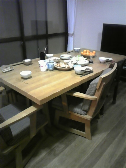 テーブルが部屋に対して大きすぎて、居間のスペースがないこと、椅子が重すぎて危ないこと、色々気になりだし、買い替えることに。まだ、新しいのに買い替えることを許してくれて、ありがとう。新しいテーブル&椅子選びに 何日も色んなところに付き合ってくれてありがとう!