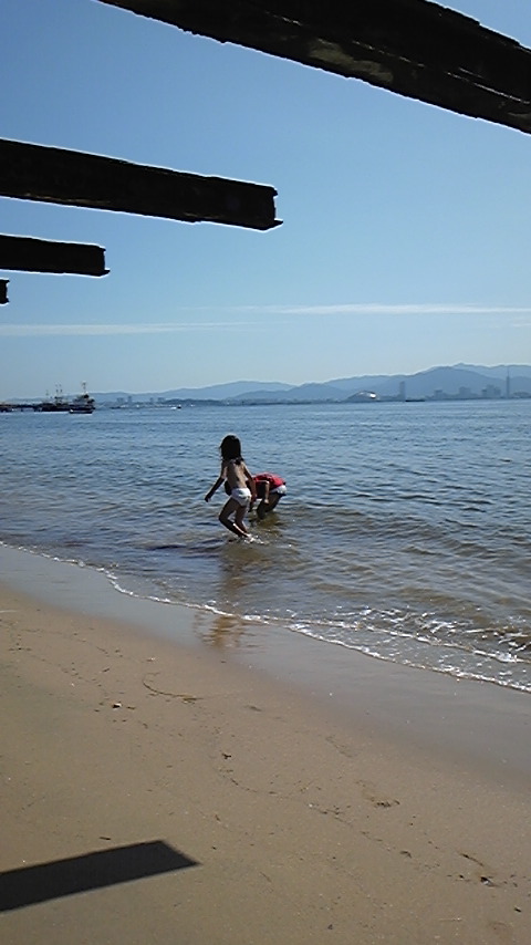 ラジオ局の主催で小学生向けの「お話コンクール」があり、朗読大好きな娘が第一回審査会に参加しました。子ども達は帰りに近くの海で泳ぎました。水着は持って行ってなかったので、パンツ姿で泳ぎました。元気でいいなあ。