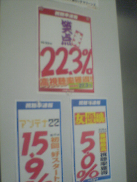 新生銀行って、時間外手数料がタダだったんだ! 知らなかったー。 あとセブンイレブンでおろすと昼間でも手数料105円かかるじゃないか、それもタダなんだって!! 新生銀行はATMがあまり無いんだけど、その代わり 他の銀行(UFJとかみずほとか全部)のATMでおろしても、手数料・時間外手数料もタダ! 正確には一度手数料は引かれるけど一ヶ月分の手数料が翌月まとめて返ってくるんだってさ。 ネットバンクみたいなやつなので通帳は無くてネット上でやりとりも出来るんですけど。 ネットで振込みすれば他の普通の銀行への振込み手数料も月5回までタダ!新生銀行同士は何回でもタダです。 すげーすげー。 時間外と振込み手数料だけで月3千円は使ってるこやじとしてはかなりオイシイ。 あとどーでもいいけどキャッシュカードが32色もありました。こやじはバイオレットに( ̄∇ ̄) 通帳の代わりに、毎月送られてくる取引きレポート保存用にバインダもくれて説明書もカラーで見やすいし。 何より空いててすぐ口座出来たし姉ちゃん優しいし。 アナログ派なので貯金用には不安だから普通の銀行使うケドちょっと得した気分★ミ