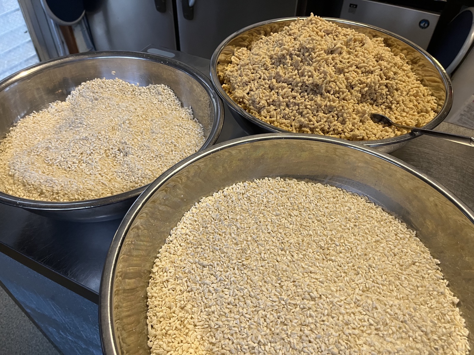 そして冬のある日、ついに茹でて潰して麹と合わせるという。