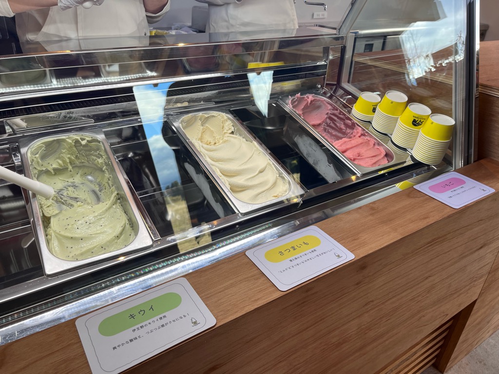 ジェラートも地元のものにこだわり、那須塩原市の牛乳と、地元那須産の果物を使ったジェラートとなっております。試食会の日はイチゴとキウイとサツマイモ の3種類のものがありました!(中でもサツマイモは自家栽培!)どれもフルーツが濃くて美味しい!これはぜひ一度食べてみていただきたいと思います。四季の移ろいによって使用するフルーツは当然変わっていくのでそれも楽しみですね!