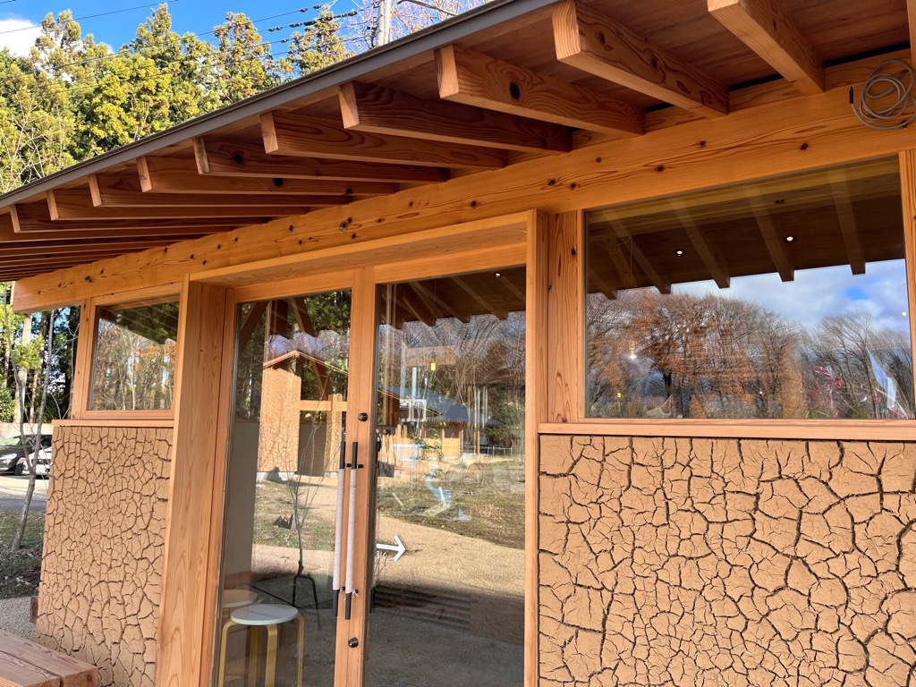 実はこれは土壁なんですが、稲作本店の井上ご夫妻が職人さんの手を借りながらも自らの手で施工した土壁となっております。その様子もTwitterをさかのぼると見ることができます。