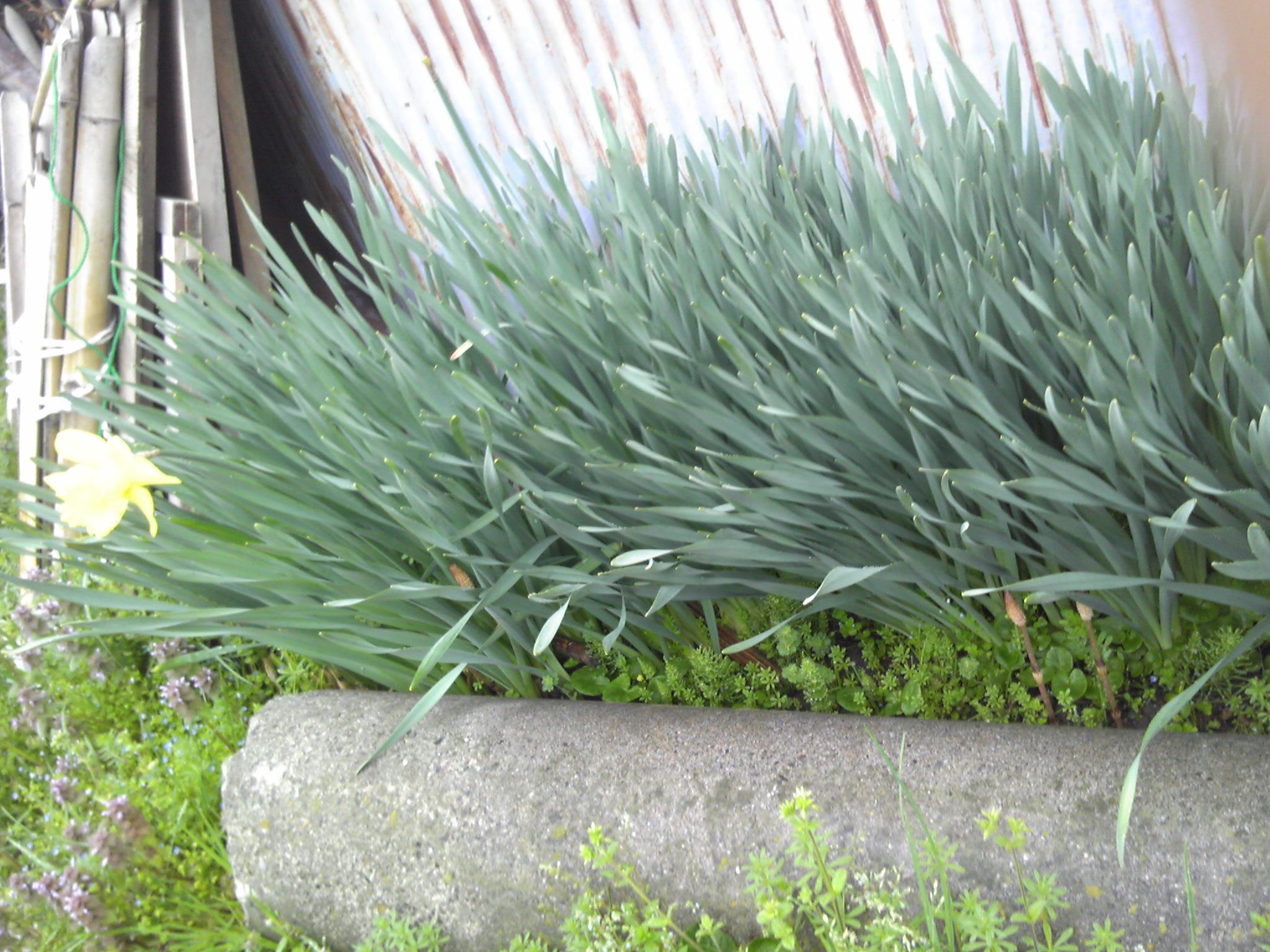 バスコ(風呂場用コルクタイル)はいい感じ。庭も緑がキレイ。雪で歪んだサツキも生きている。バラはやっぱりこけたけど、こけてもまた生えてきた。マーガレットと、ムスカリ、。草刈りの時に避けてもらおうと、周りだけ草を引いた。