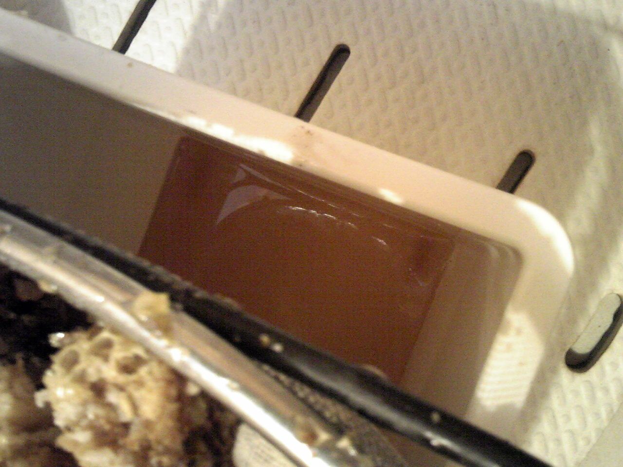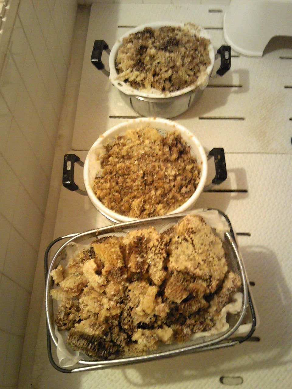 稼働中であるとばかり思っていた一つのミツバチの巣。蜂さん達は引っ越したあとだった・・。出て行く時は蜜も持って行く、と聞いていたが余程急いだか、はたまた蜜が多かったからか・・。とにかく、サイミツ作業。こさんご夫妻に感謝。基本、たれみつを採集する方針なので、いまのところ、浴室に置いた。どれくらいになるかしら?お楽しみ。仕切り直しで、また、来てくれると良いな・・。しかし今年は冷える。今朝の散歩でも、まだ吐く息が白かった。