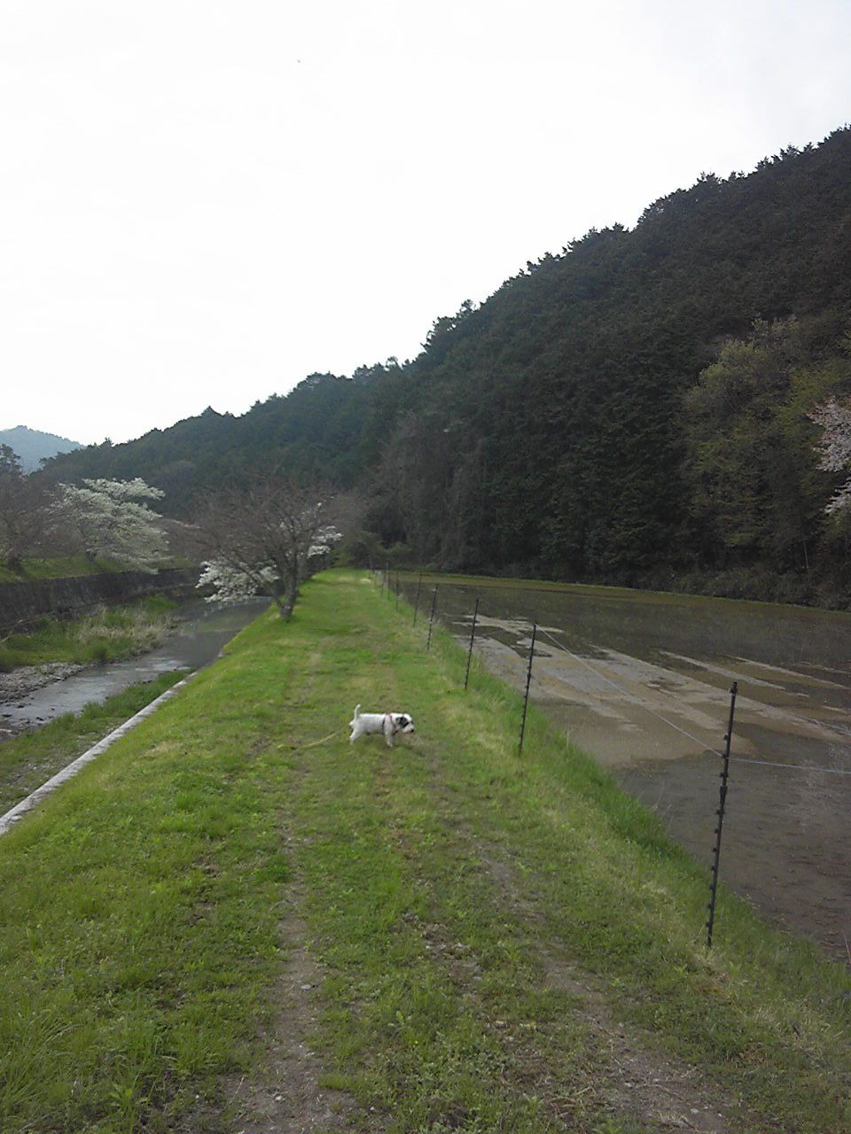 チャーリーと朝の散歩、最近どういうわけだか、夕刻の散歩もしたがる。ま、元気な事は良いことなので付き合う。こちらのペース配分が難しい。桜の遠景は、本当の遠景だ。(笑)昨日の写真。今朝は、散り初めで、落下盛んになるのも時間の問題。圧倒的桜色の世界。近くに桃の林がある。もも色はもう少し赤に近いピンク。途端に中国的な感じがする。散歩後、少し片付け。本の事で、夫とやり取りがある。「読まないと言って、捨てるのはいかがなものか」まあ大体そういう意見。夫。共感半分、反発半分。わかるよ、大いに。あたしは捨てる時本当に葛藤したもの。。貴方不在の時の孤軍奮闘を理解してないとすれば、やだなー・・。嵐の前の静けさ・・。(笑)