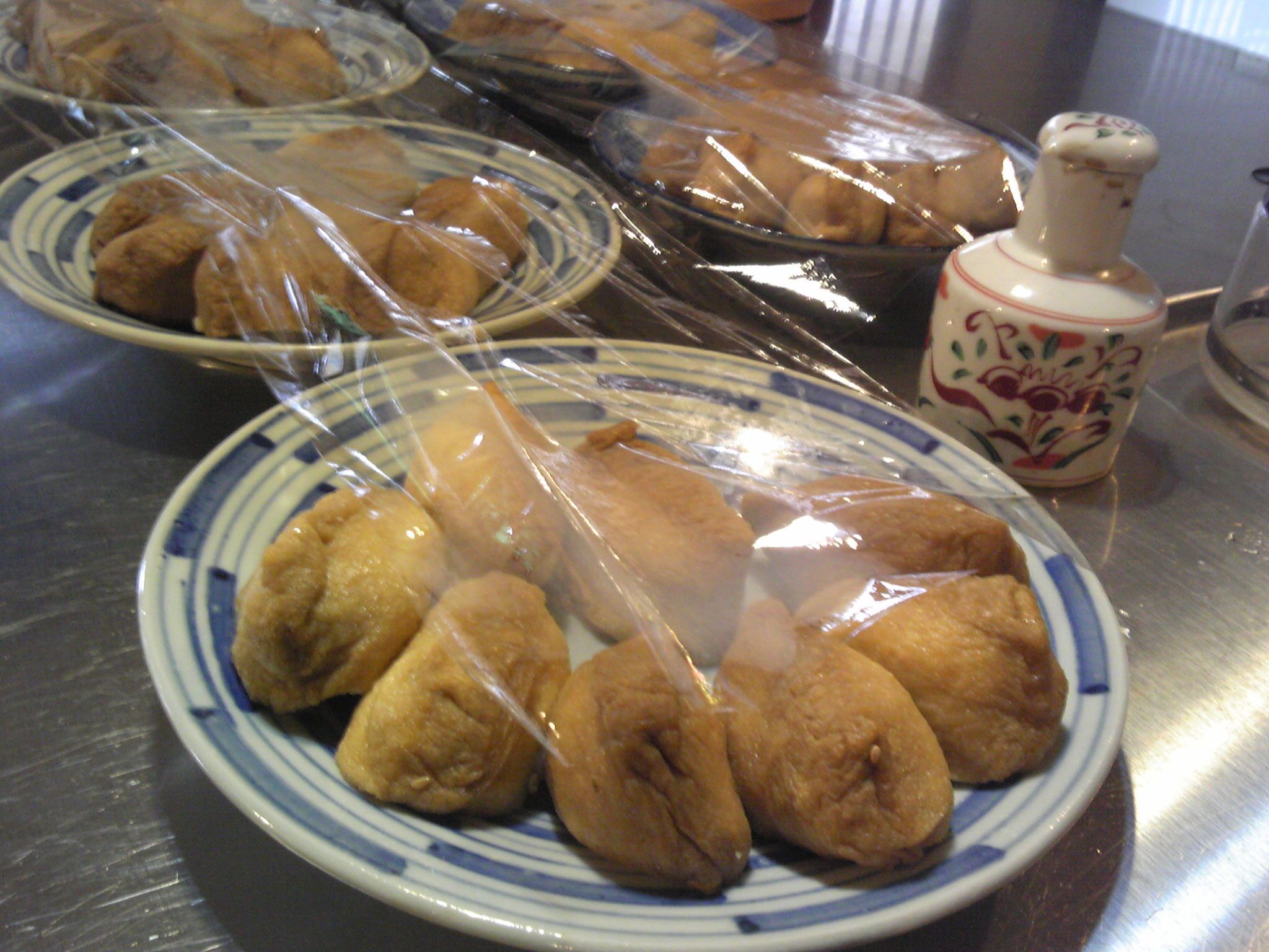 いさんと、あさんが、宝塚からやってきた。ゆちゃん、(いさんのお嬢さんは東京赤坂から)も一緒。ご両親の引っ越す先について、ちぇーっく!って感じかな?かさんとおさんは、市内からやってきた。今回お引き合わせしたいと思っていたたさんご夫妻、も市内。でも、市民になってわずか3年。。あたしは、おいなりさんを作った。普通のと、わさびいなりと。計48個。このテーブルだとちょっと狭かった。ので、丸テーブルも出した。椅子は足りなかった・・。家中からいろいろをかき集めた。ちょっと、いい感じ。。。たさんは、みず菜のサラダ。いさんは、クルミ入り混ぜ寿司と、ほうれん草の胡麻和えと、アップルパイ!お菓子もあり、ワイワイガヤガヤした。数年振りじゃなかろうか・・。ま、ひとまず、友達の輪。ホイ。