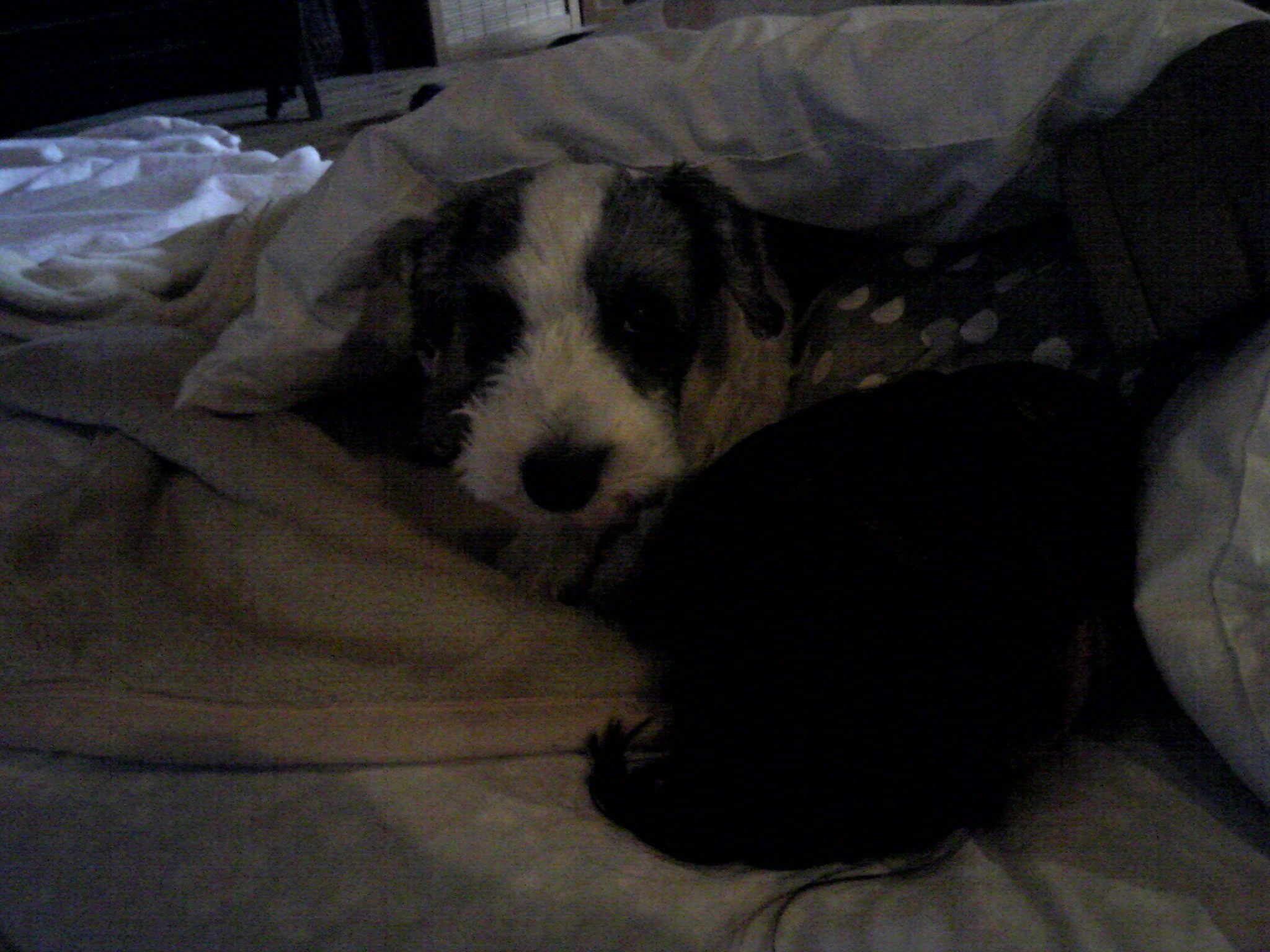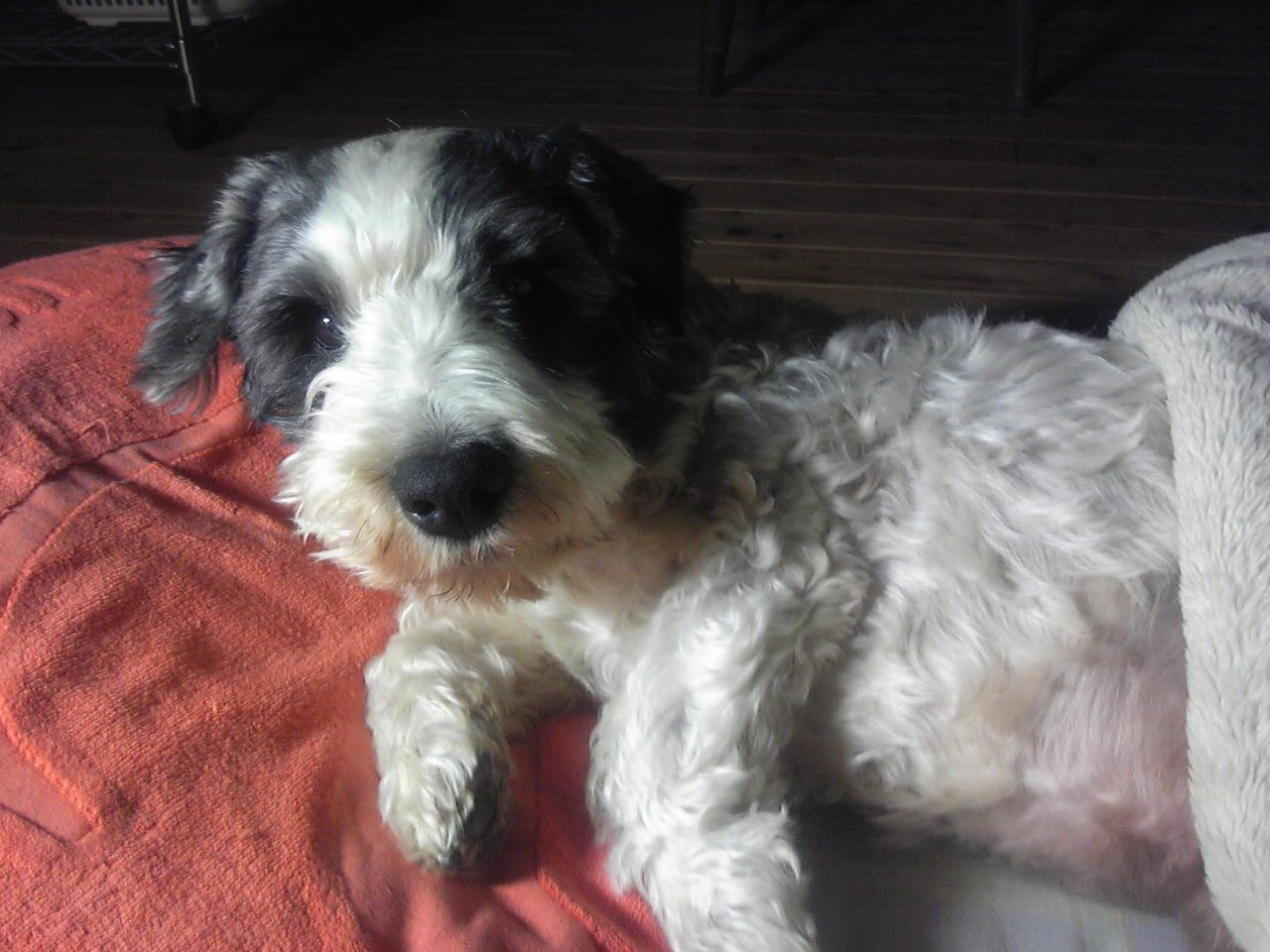チャーリーの寝床は、犬用にしている子供用布団とお古の夏用布団。これをば、寝る時にカリカリして丸く縁を高くし、中央部に丸くなる、後は、寝入ってからは(でれーんと身体は伸びているが・・)ほぼその上で寝ている。しかし、あたしが入浴すると必ず、飼い主の布団に移動し、自分の場所だと思うのかして、。ちょっと、困るんですけど。え?なにか??みたいにする。もちろん、その後は・・。おやすみい。しかし夜中に必ず移動してるようだ。元の所に寝ている。朝は飼い主の方が早い。珈琲などしてる間に、また、飼い主側に移動。しばらく掛け布団の上で寝てから、むっくり起きだす。工事中は大変だったねー・・。まだしばらく残りがあるけど、新しい場所に早く慣れようね。。