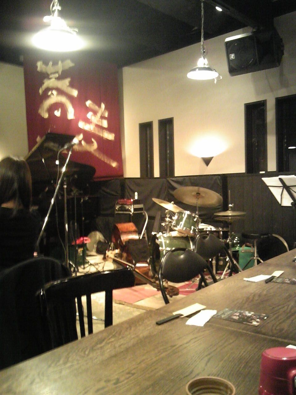 5時半開場で、おそばを食べといて下さい。6時半からスタートでっせ。秋の宵、素敵なジャズナイト。最初は、全く出かける気が無かった。いつものライブ仲間の85歳のたさんが(彼女はシャンソン)行こうよ、とかさんを誘い、かさんが、行こうよ、とあたしを誘い、結局出かけて、ピアノもベースも、ドラムも、素敵だった。バックの皆さまを揃えて、前で歌うまさんも素敵だった。(もちろん、皆さまプロですが)帰る時、、オーナーにずっとからだをゆすってましたね、お好きなんですか?と、聞かれる。あらま、身体をゆすらないで聴いておられる方が、あたしは不思議だけど。と思ったが言わなかった。なぜみなさん、じ・・とこういう音楽を聴いている事が出来るか。。コミカルでさえある。