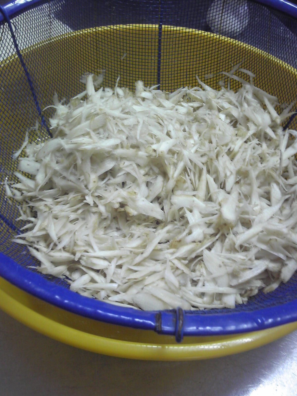 冬の食材、子芋(こいも)。篠山市の北の方に、あもち(天地)という地名があって、天地川という清流もある、奥まった場所。そこで採れる子芋を、あもち芋、というのであるが、これが、、美味しいのだ。あたしの参加するヴォランティア組織で、このあもちいもを使っての料理講習会があった。ちなみに、あもちいもの苗を貰ってきて、数キロ南のウチの畑で作ったが、普通の子芋が出来た。どうも、土地の恵みらしい。。その味が違うのである。違い鮮明で、特別美味しい、というので、数年前から地域の皆さまのお励みによりこのたび、関西メディアで紹介されたらしい。あたしはテレビを観ないので知らなかった。子芋、を軸に地域おこしとは、ま、なんちゅうか・・地味なんであるが・・。(笑)昨日は、主婦歴数十年の猛者が参集したので、講習会とは名ばかりの?スムースなお料理会だった。この牛蒡のササガキをご覧あれ!一事が万事、この調子である。みな、すごい料理人である。(おほほ、あたしも含めて)あもち芋を茹でているところである。ヌメリ成分があふれる、、がこれはアクでないので取り除かない。格闘する事たったの90分で、あもちいもフルコースの出来上がり。コロッケ、酢のもの、汁、ご飯、すべて、あもちいもが入る。60個もコロッケ揚げたので(あたし)夕食は、手抜きになった。がはは。本当に美味しいのです。あもちいも。