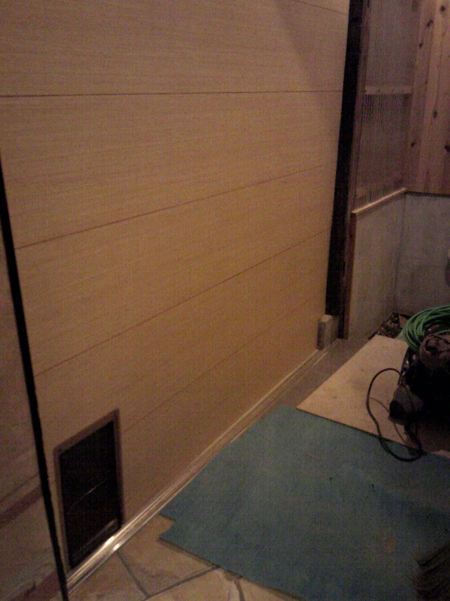 犬の出入り口(写真左下)の入荷が遅れていたためだ。