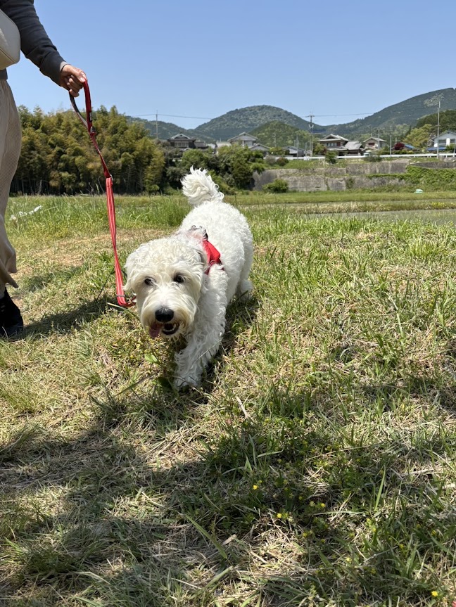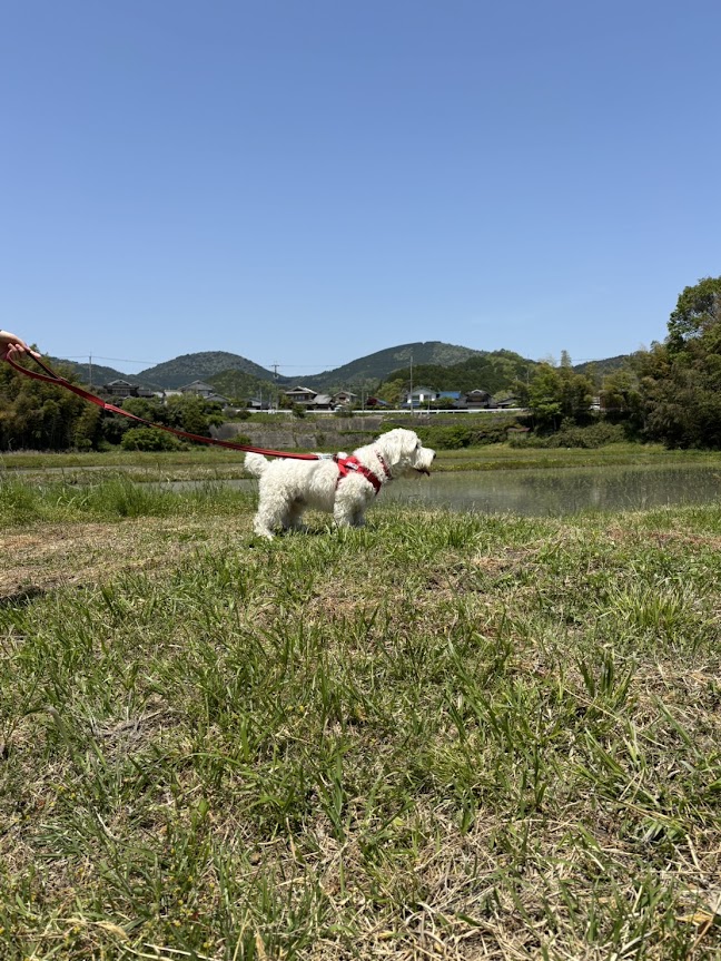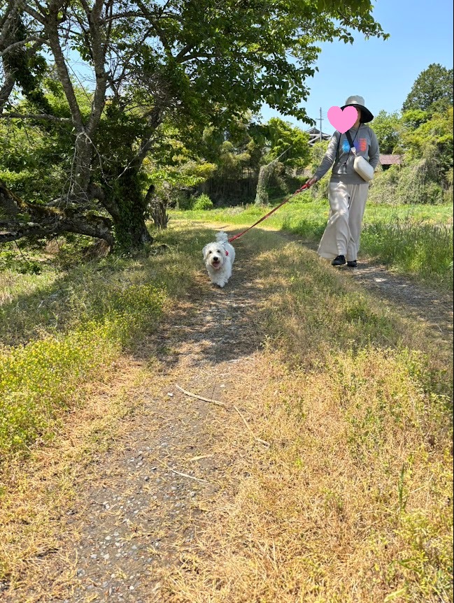 この田んぼの向こうの、桜並木の、川沿いの道を・・。