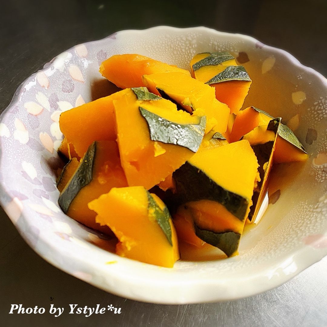 夕飯はメインはまだ作ってないですが、お腹の調子を整えるために南瓜の煮物を作りました。