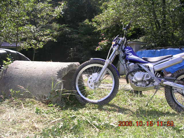 10月7日、ガソリンタンクにガソリンを補充しエンジンをかける。実に久しぶりだ、昼前ではあったがいつものトライアルコースへ行く。夏の暑さを物語るように雑草が生い茂っていた。今年の暑さでは誰もやらないよなぁ。藪に突っ込み脱出不可能になる前に帰宅する。今日すでに筋肉痛があり。