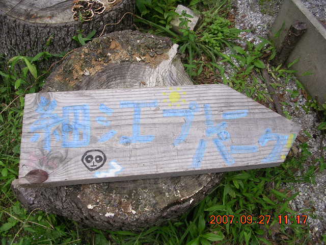 本当に僕は怠け者ですね。ブログを観ると・・・・・トライアルの練習は今年になって初めて、1年ぶりに乗りましたね。今日はなにやら派手な物が吊るしてありました。誰か住んでいるのかなぁ?練習はいつものところです。ここは、月に1回地域の子供達に開放しています。自然の中で愉しくのびのびと遊びながら学ぶ。ボランティアの方たちで運営されています。しかし、誰か住んでいるかも!食事の後片付けはしっかりしているようだ。今はどちらかに外出中かな?周りを見渡すが人の気配は無いです。え~~~~っと、1年ぶりにしますからね・・・・おさらいから。あーー、亀状態でクランクにひびを入れてしまったところこれは今日はしない、もうやめる。おさらいおさらいと、この一番小さなタイヤで練習。問題なく出来ました。つぎはと、これですね、2度ぶかしで行く。3回目で出来ました。それと、これも、2度ぶかしで。ふ~~できた!よし・・・・次は、少し大きなタイヤに挑戦せねば。1回目~突き刺さりなんともならない。2回目~カマキリが怒った状態で、おっとっと。ふ~~~あぶない。3回目~勢い余りすっ飛ぶ・・・・・あいたたた、もうやだ。きょうはもうおしまい。隣にはまだ大きなタイヤもある。目標は尽きないね。奥にはまだ練習するところがいっぱいあります。斜面を使った練習。などなどありますが、今日はしばらくぶりなのでもう限界でした。帰り道、無人販売所にて野菜を買う。採れたてのみかん、小茄子、ゴーヤなどなど。山に来るとつい買ってしまう野菜、帰りのリュックが更に重くなる。遠足のように帰りは軽いのが良いと思うんだ。
