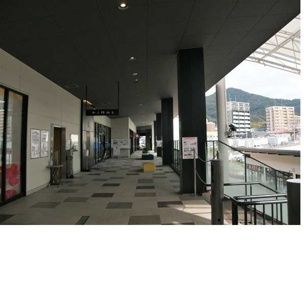 ここは、二階の、通路である が、入っている、店舗には、特徴がある。