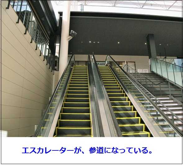 神社へ、行くには、エレベーターで、二階へ行く。