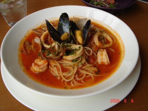 カルティエででした。あっさりしてとてもおいしかった。ペスカトーレで最近の一番のあたりでした。他に冷たいスープと暖かいとサラダとデザートつきで840円はとってもお得。来週も来よう。