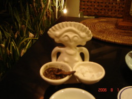 今回のバリ島の旅、1日目は午前中ビーチでまったり。売り子がうるさくなくのんびりできました。波は小さくパラセイリングなどウォータースポーツが盛んでした。泳ぐにはクタ地区の波ほうが楽しいかな。午後はタラソバリのサラスワティを受けました。アロマテラピーマッサージ、ルルール、コールドミルクマスキング、フラワーバス、ラベンダーローションなどなどです。本当は海藻パックをして欲しかったのですがそういうコースだたのでしょうがなし。でも、可愛い子で気持ちいいでした。その後、アクアメディックプールをうけました。ジェットバスの強力のようなもので足の裏、足首から腰、お腹から背中、肩を1時間かけて水力を受けるのです。かなりの水力なので終わった後はぐったり。そして午後はケチャバリでお食事。メニューをみて感で注文、チィ・チィとビンタンビールを注文したらどうもチイチイは飲み物らしく別のメニューでよくわからない料理を注文。これかサンバルンのソースでまあまあの料理でした。これでホテルに帰りテレビを見る。50チャンネルくらいあるんですよ。でも、みるのはMTVやNHKくらい。