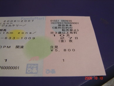 ふ~、やっと今日引き換えしたのである。近所のファミアが故障したのです。立ち見の席を取るので精一杯。バンドが入っているかが気になるところですね。