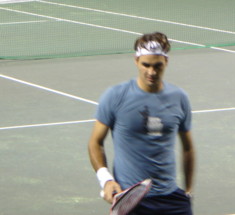 公式練習見にいきました。フェデラーのこのスイングなんですよね。大抵の選手はトップスイングでラケットを上に持ち上げるためボールにスピードを出すのにとても力が入るけど。フェデラーはヘッドスピードを利用して水平にスイングしてそれほど力をつけなくてもスピードが出ている。まねしようたってまねできないですけどね。10時にフェデラーが現れ、知らない外人さんとストローク、スマッシュ、ボレーと淡々と練習。30分後去年の全日本チャンピオン岩淵選手が現れ打ち合い後練習試合となりました。対等の以上の岩淵選手活躍に会場は割れんばかりの大拍手。スピードは負けてませんでした。TVでしか見たことのないフェデラーが目の前にいるなんて信じられん世界でした。公式戦を見たいですね。この練習だけみて帰ろうと思っていたのですが、コートサイド席の当日券7500円を買ってしまったのでこのまま1Rの試合をみました。本村選手VS CARLSEN選手。試合中にアナウンスな流れるアクシデントがあってかわいそうでしたね。鈴木選手VS GREUL選手。鈴木選手見事な試合でした。キリレンコ選手VS森上選手。二人とも艶やかなウェアーに反してハードな試合でした。最後まで見れず帰宅。テニスっていいなぁ~。