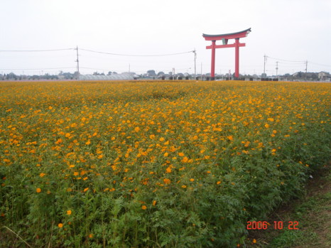 おやおや今日は曇りかいな。雨振らないで頂戴ね。テニスができなくなっちゃう。サーブ&ダッシュの練習だ。すっかり写真を撮るのを忘れてしまった。7人くらい集まったのでリーグでなくトーナメントをしました。やはり1位。来年は本当の試合に出てみたいものだ。小泉稲荷の鳥居のコスモス畑。このすぐそばの伊勢崎東運動公園でテニスしてま~す。来週は伊与久です。