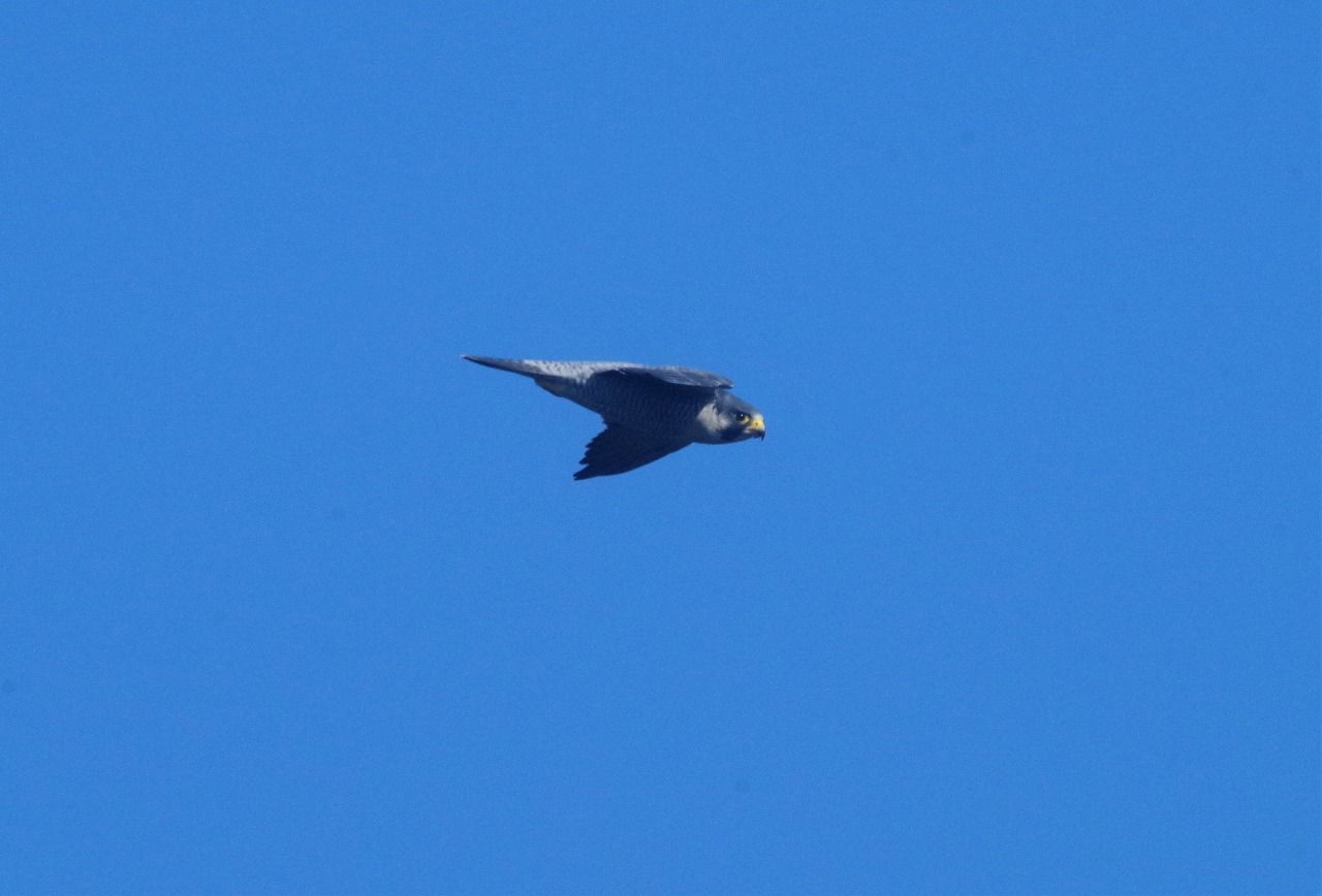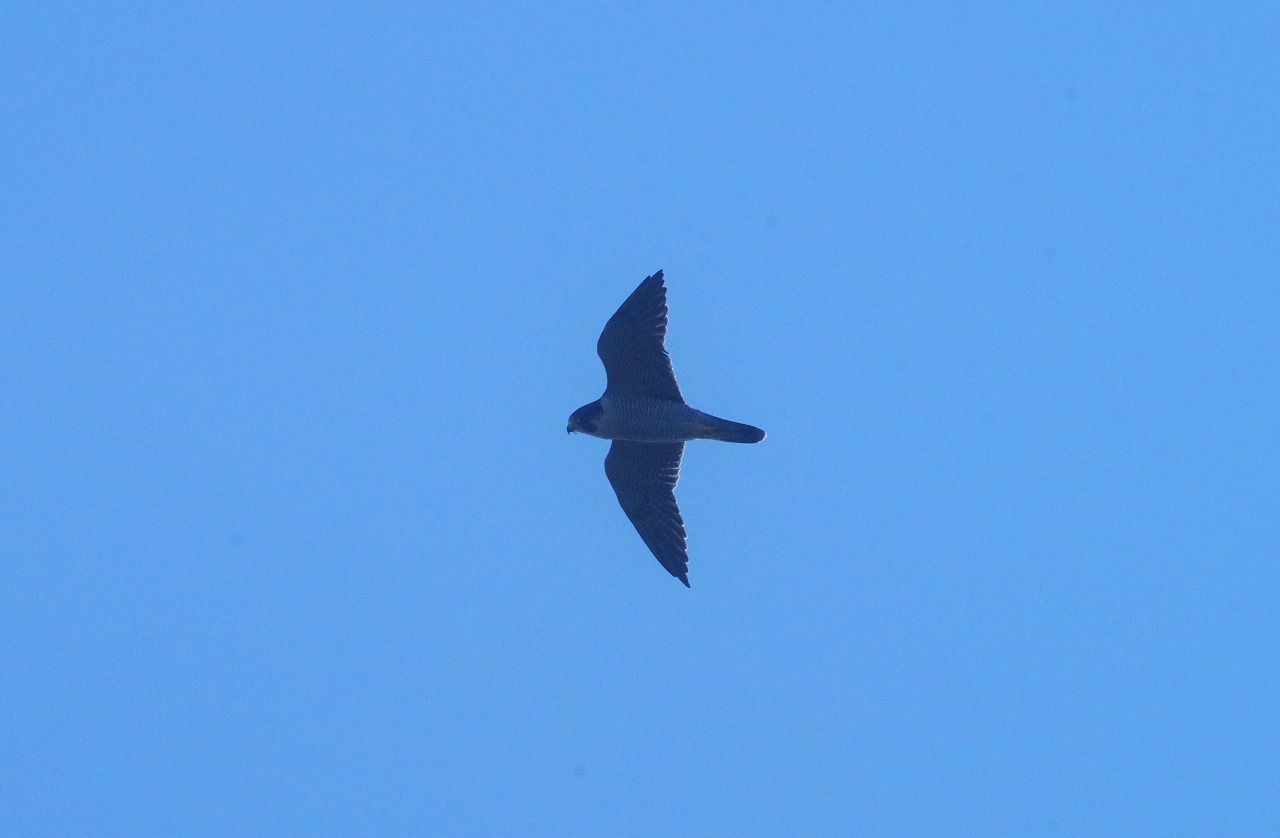やっとハヤブサの成鳥が現れたが、近づかずにやがて去った。