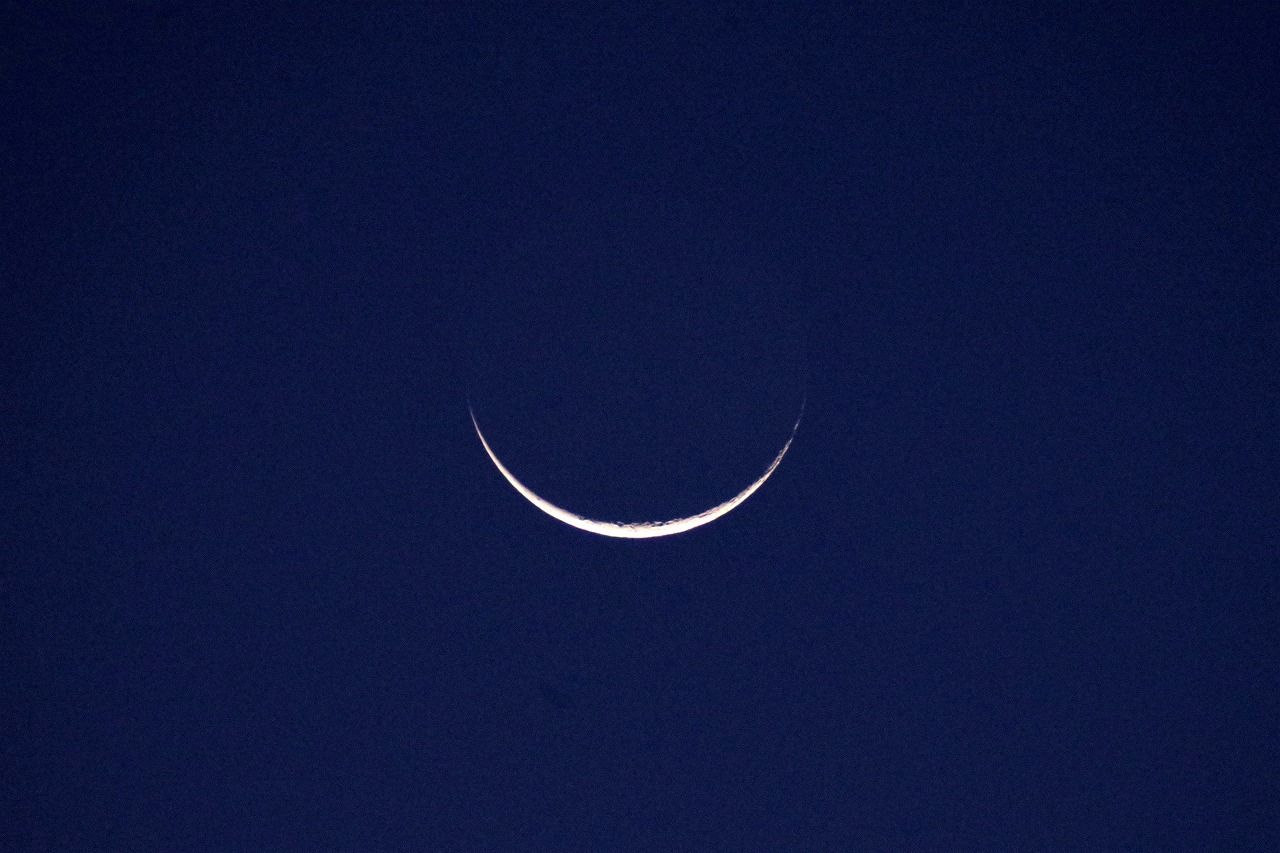 糸の様に細くなった新月直前の月。