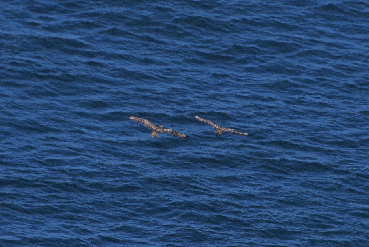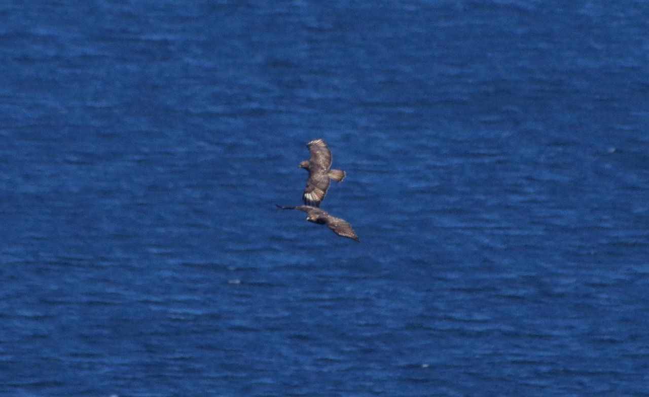 2羽のノスリが仲よく並んで飛ぶ。