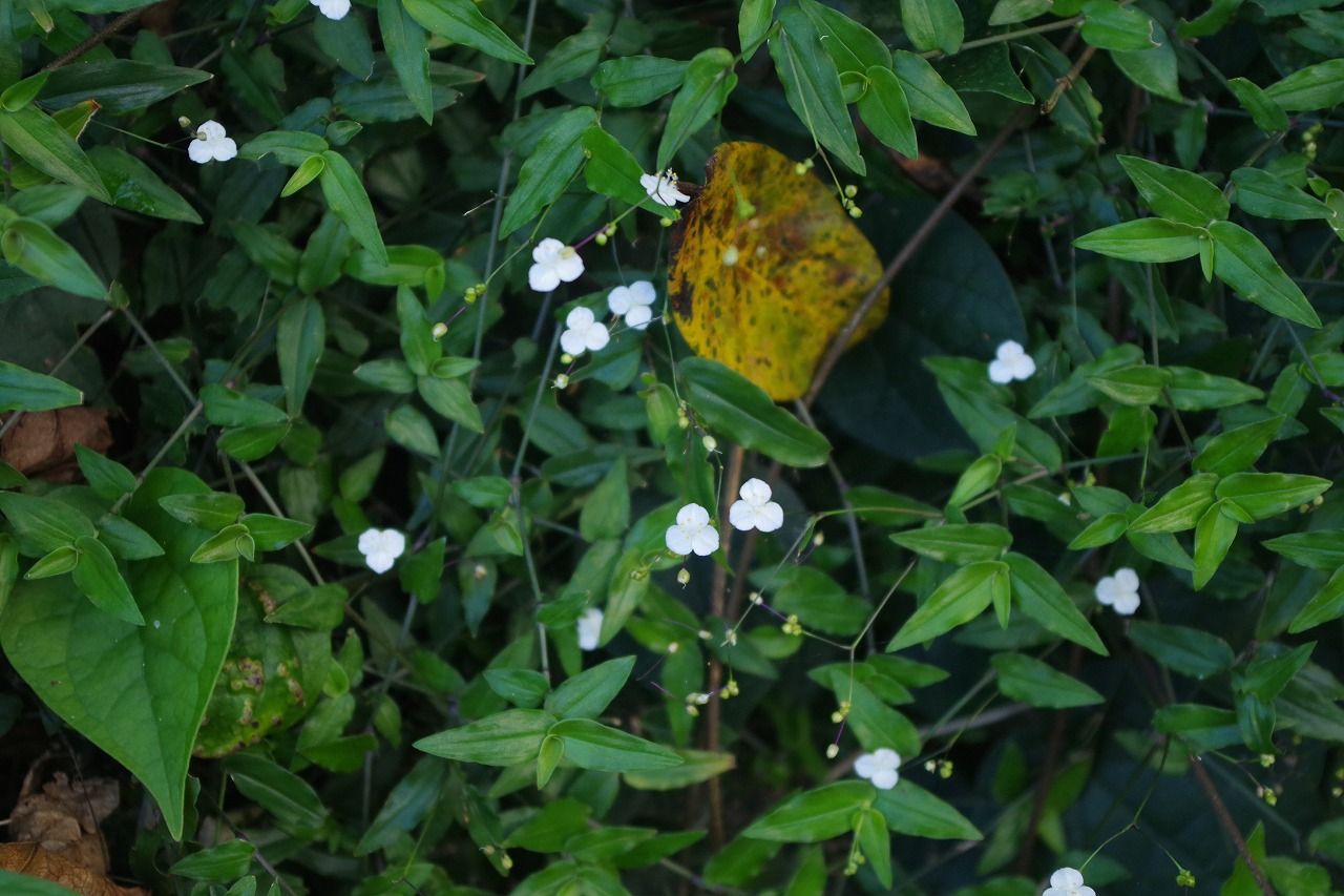 初めて見る1cmぐらいの花。ツユクサ科のよう。