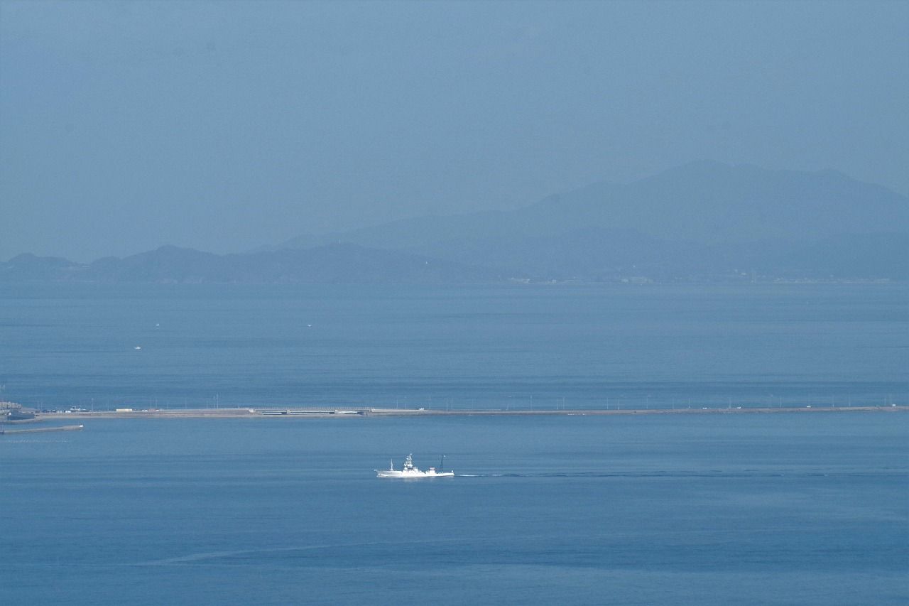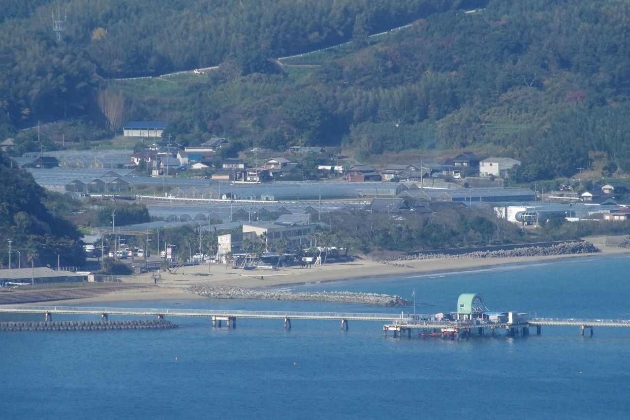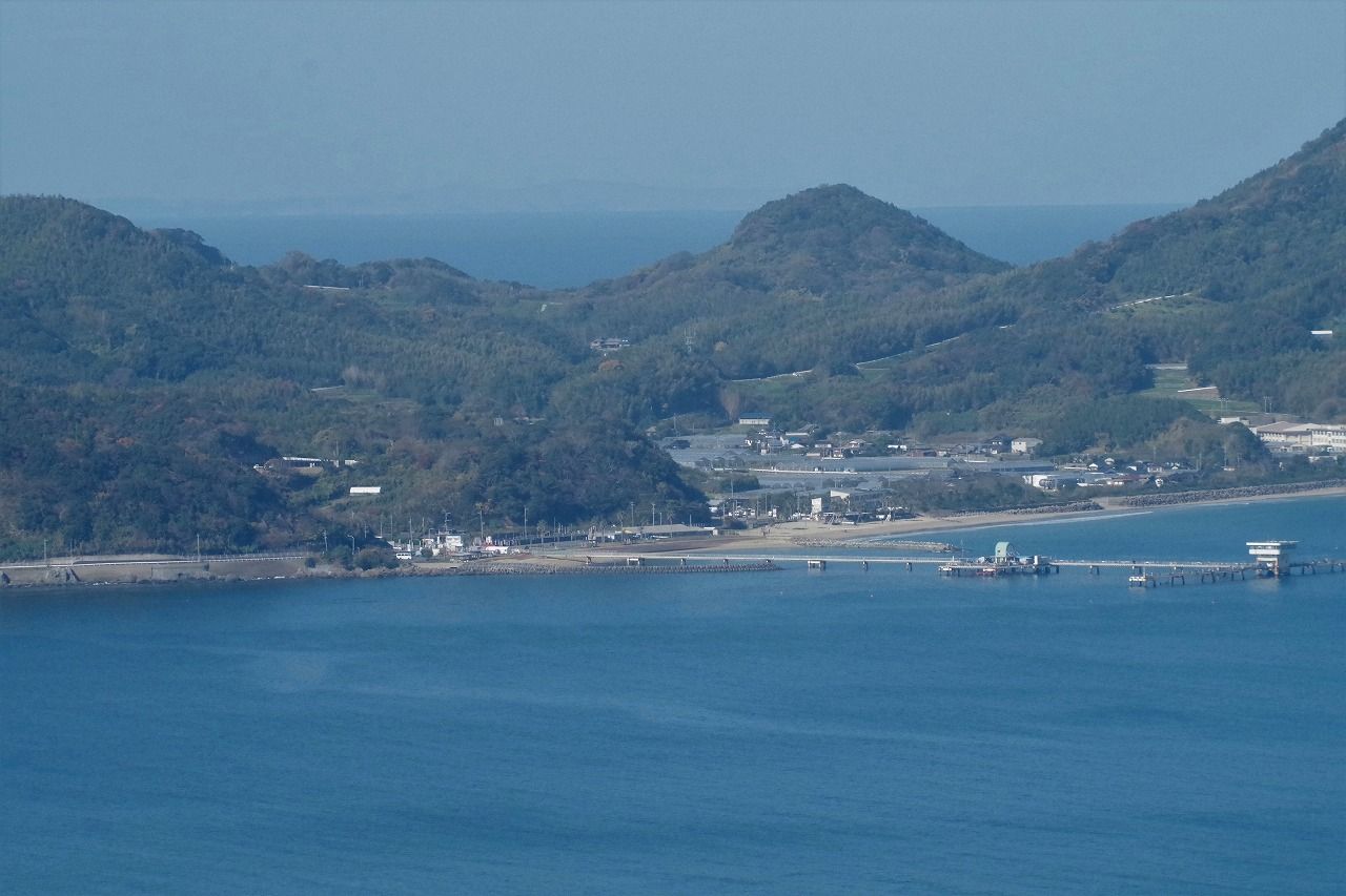 日の出はすっかり遅くなって、6時半でも薄暗い。ちょうど半分まで欠けた月が雲間から出たり入ったりしていた。西浦は西に開き、東に灘山があって日の出は見えず、夜明けが遅れる。