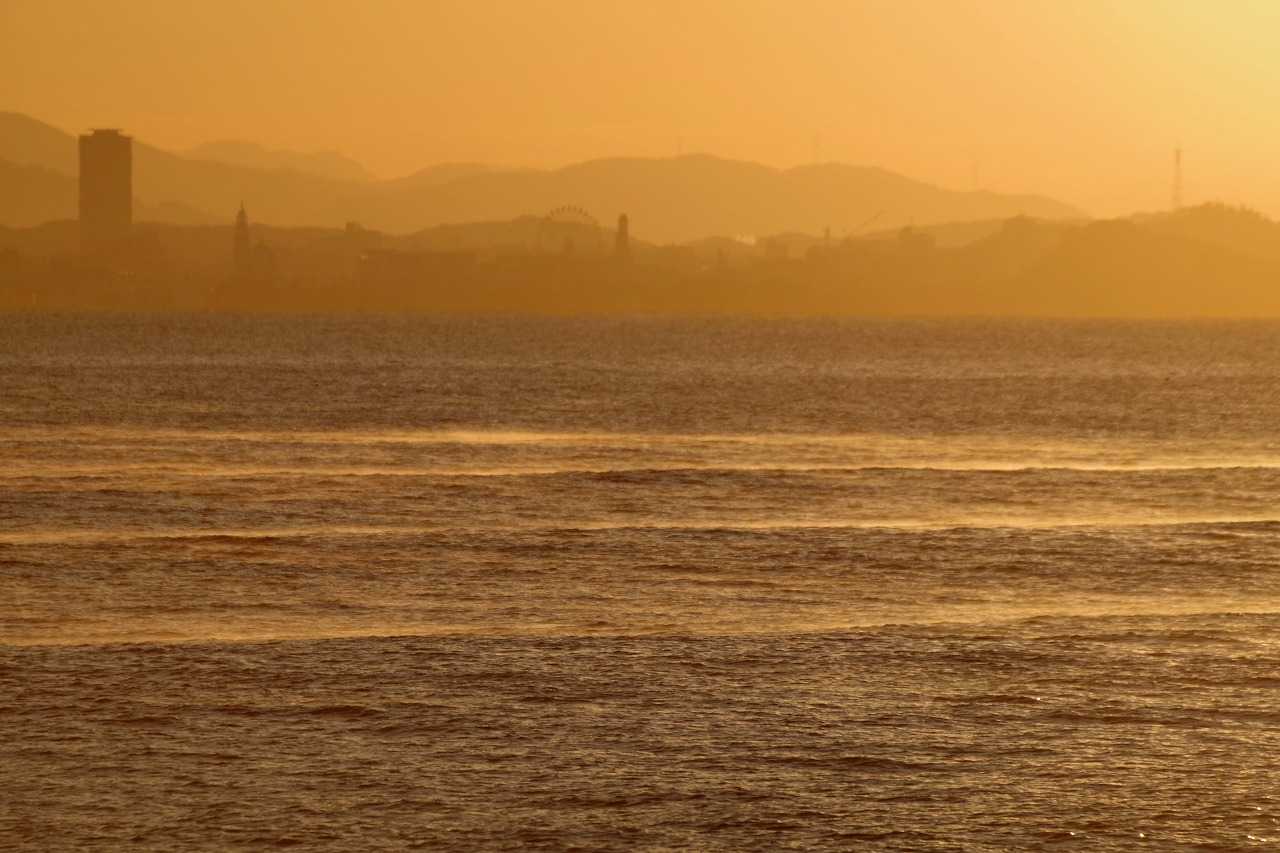天気は終日晴れで、夕日も見られそうだったので、朝日だけでは片手落ちだと思ったので、晩飯前に小戸公園へ久し振りに出かけた。午後4時半には太陽は西に傾いていて、地平近くに雲が少しありその他はよく晴れていた。