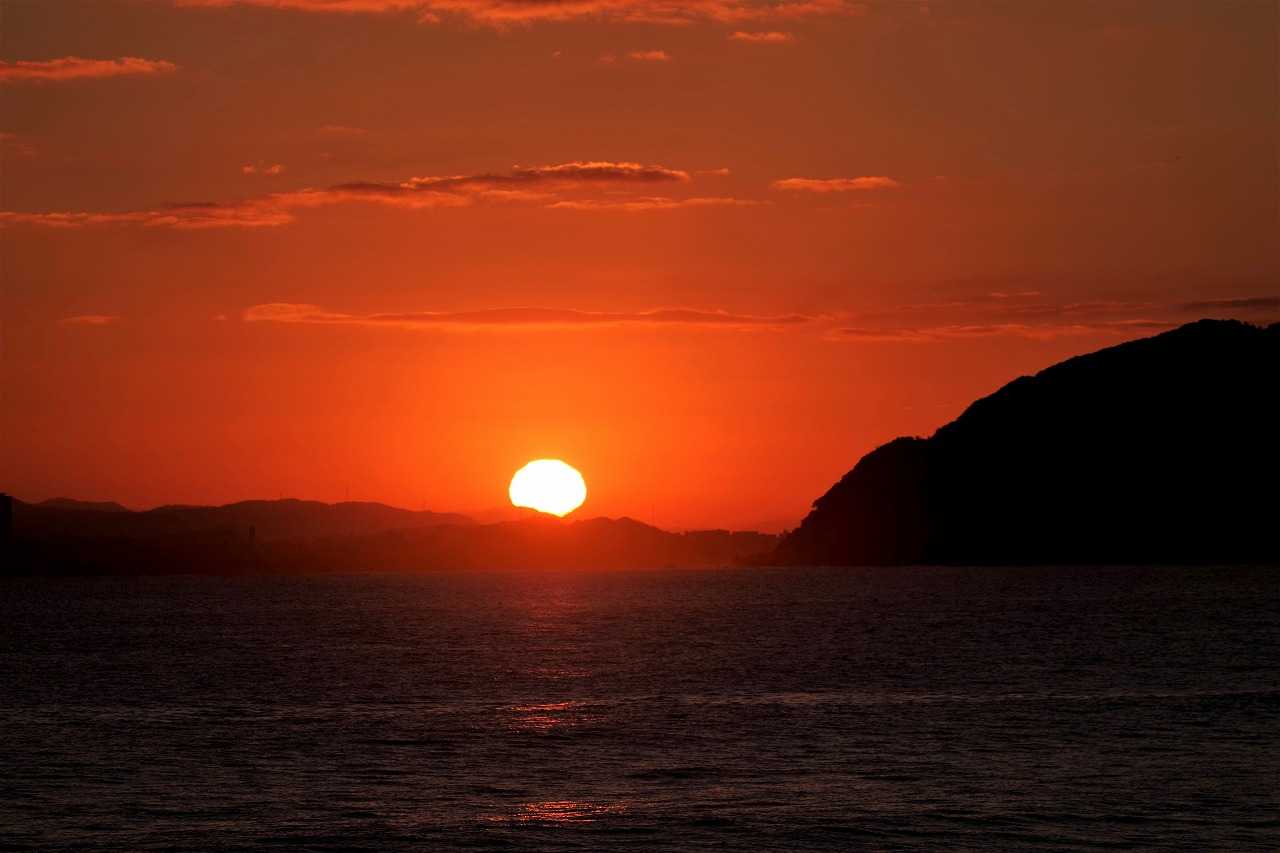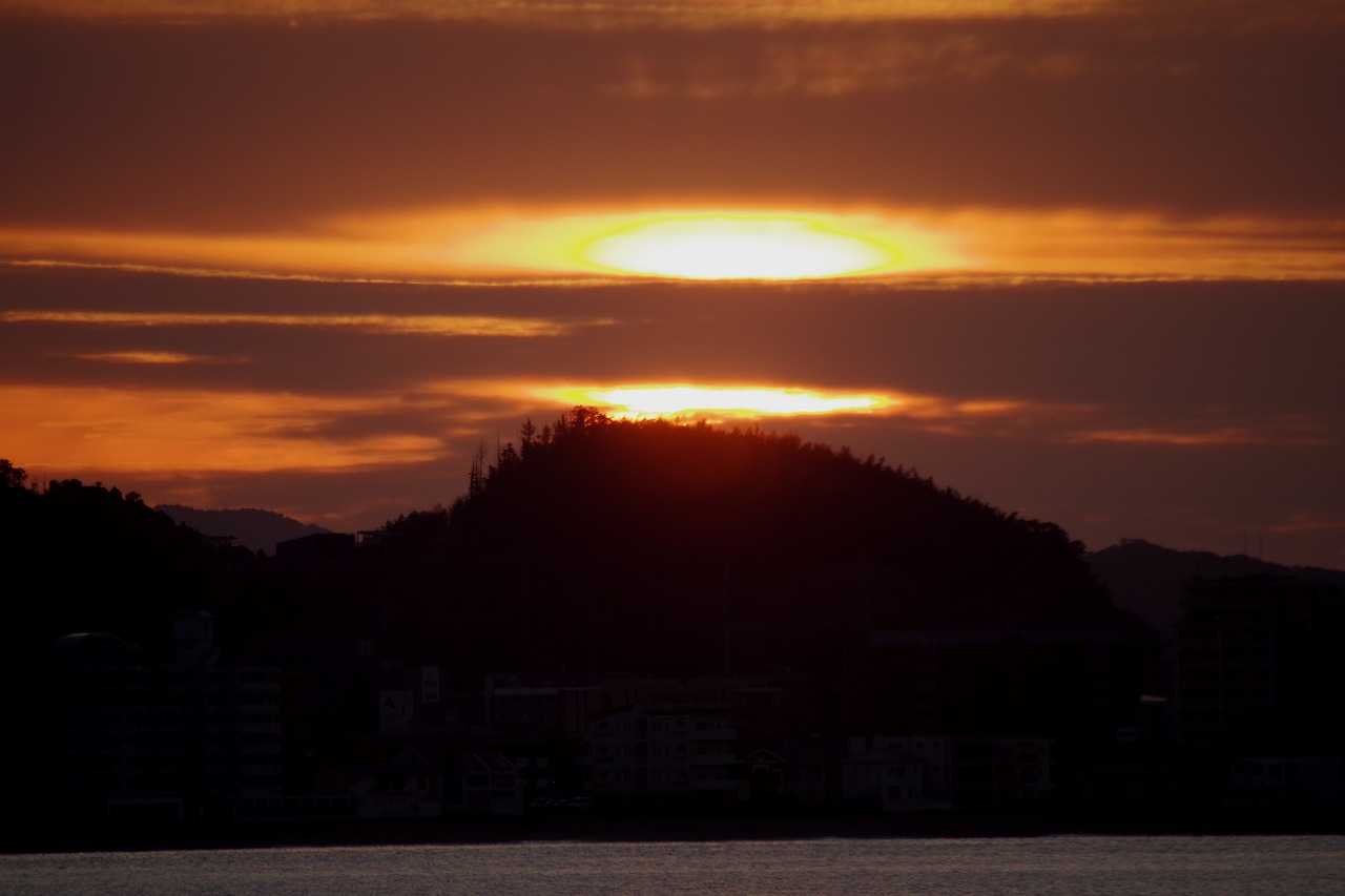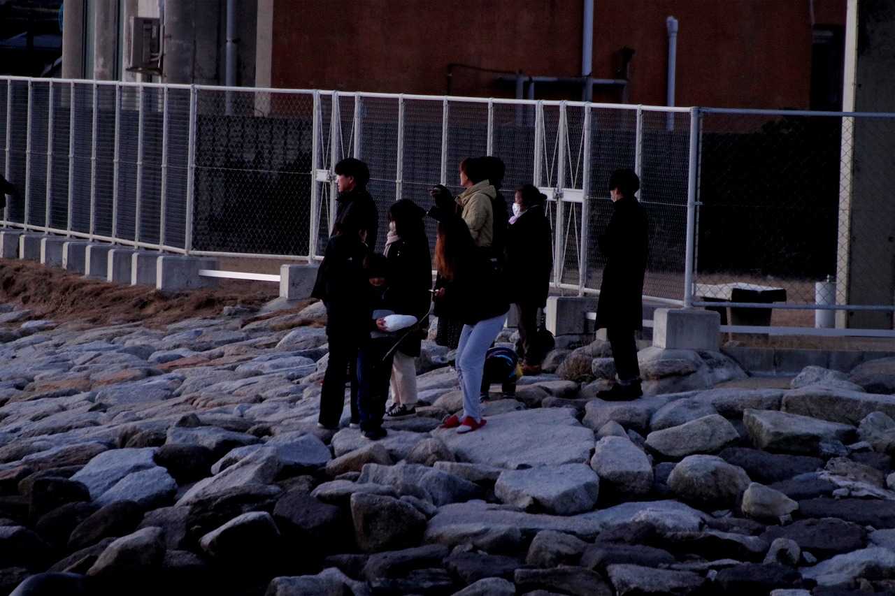 2022年1月1日の朝日が何も特別な太陽でもないのに、それを見ることが幸福なことだと人々は思うのだろう。初日の出を見ようと多くの人たちが唐泊周辺に日の出前に繰り出した。