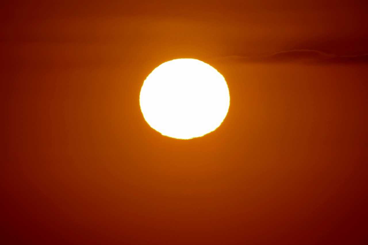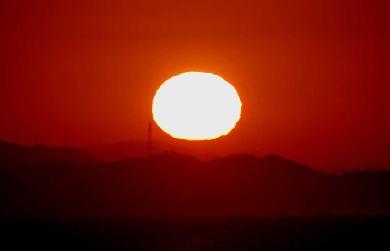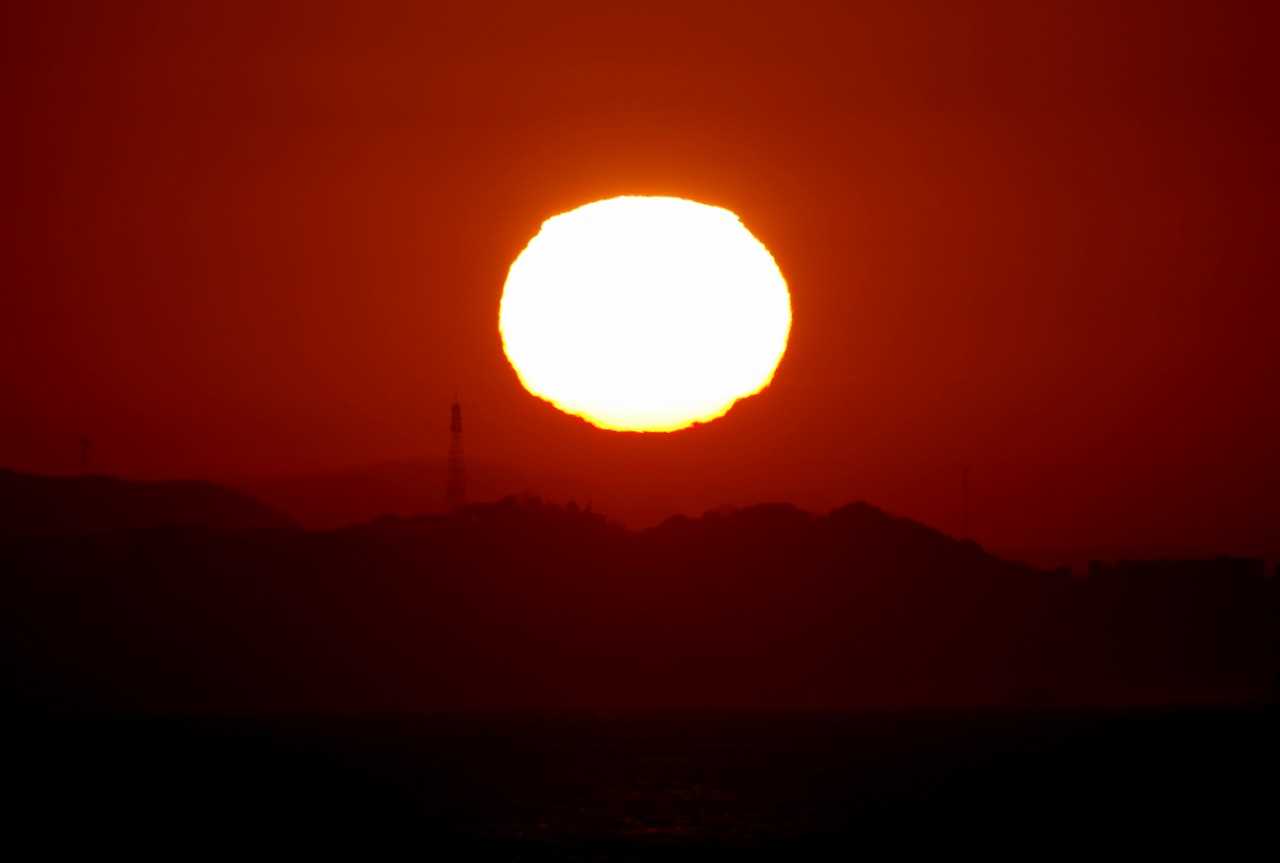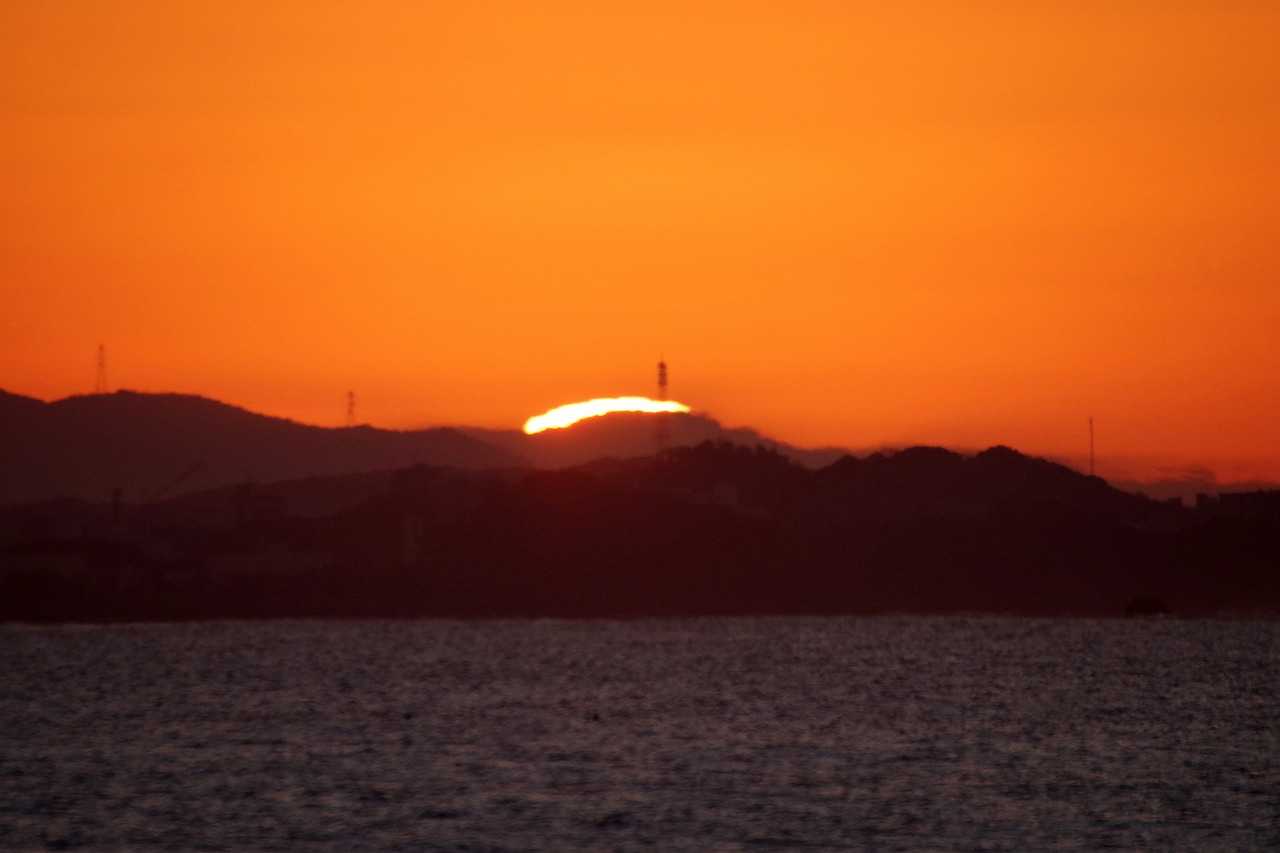 冷えた大気が揺らめいて太陽は楕円になり周縁がいびつになっている。