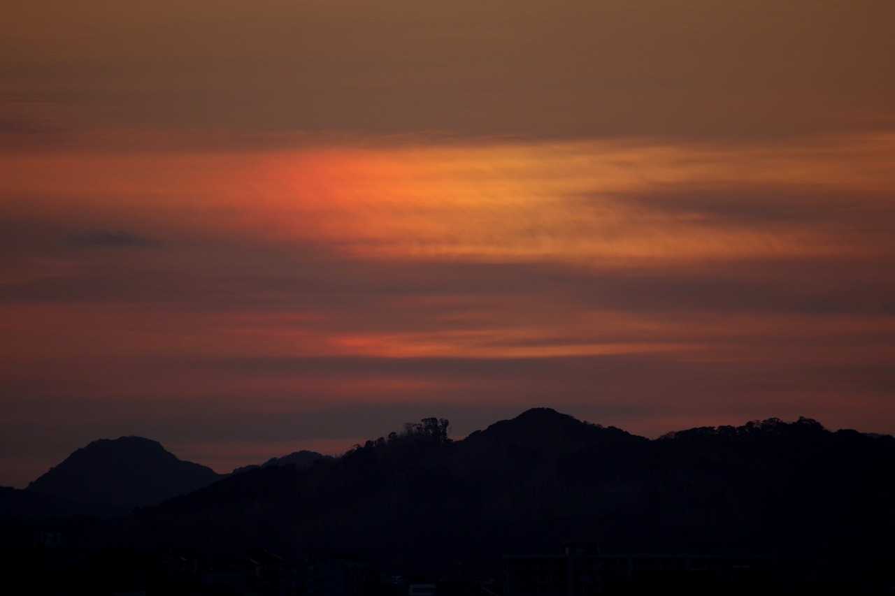 太陽が沈んだ後、東の空には地平近くに黒い帯が見られた。地球影ヴィーナスの帯という現象。