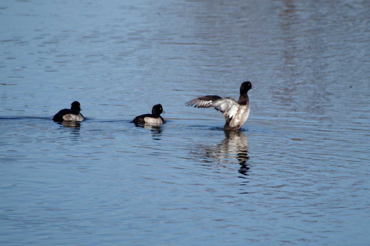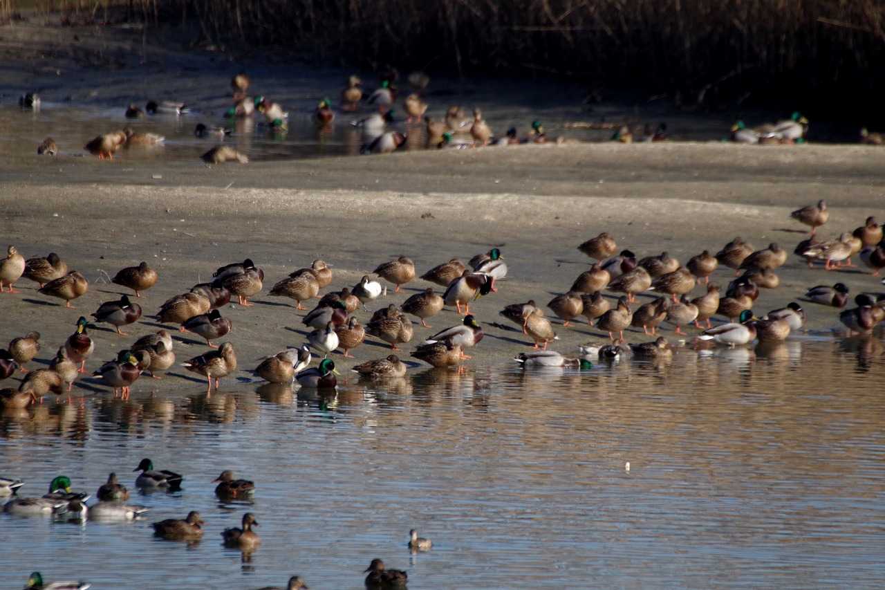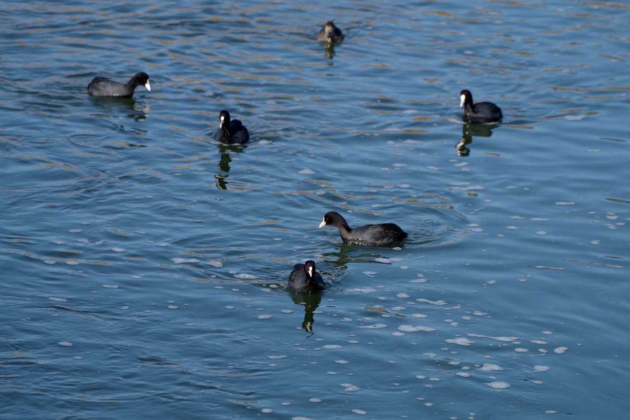 下水処理場の排水に集まるオオバン。オオバンは増え続けて水草を食いつくす。
