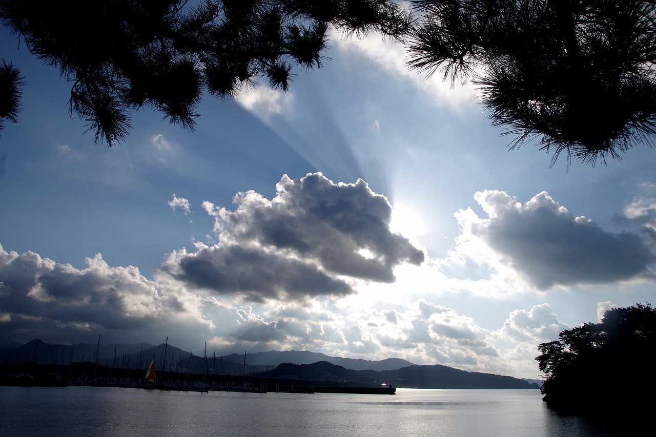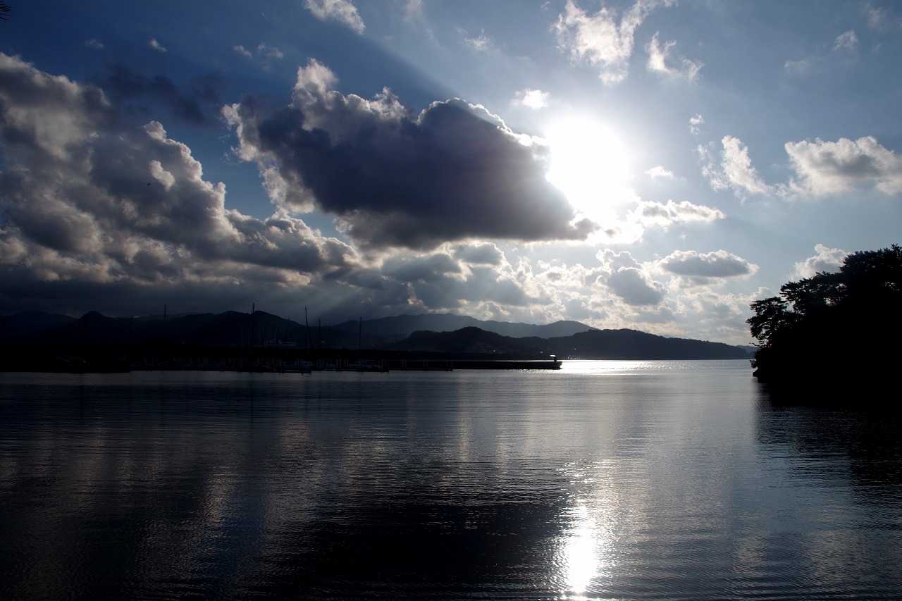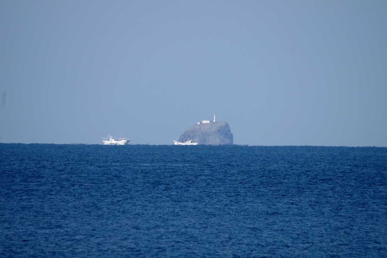凪で烏帽子灯台付近では漁船が多く操業していた。