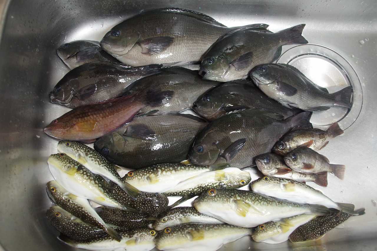 7日は西浦でグレ、フグ釣り。潮が悪く、凪で澄み過ぎているのでフグでさえ食いが悪い。潮が満ちてくるまで辛抱して釣ると、10時頃から少し釣れて、1匹だけ30cmオーバーだった。