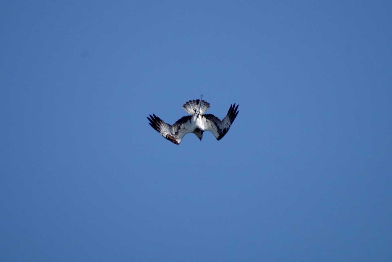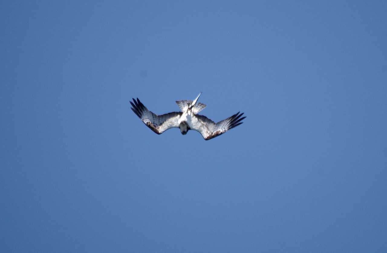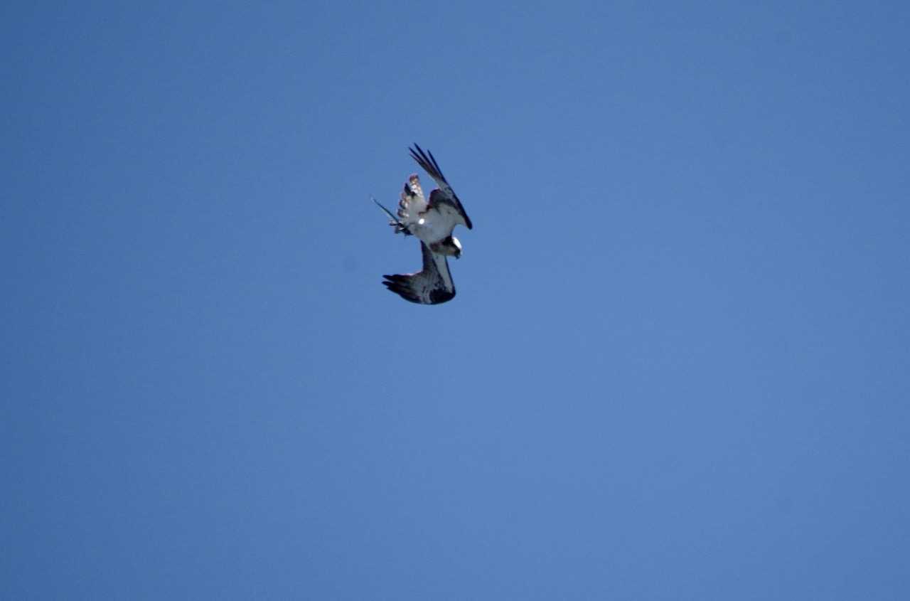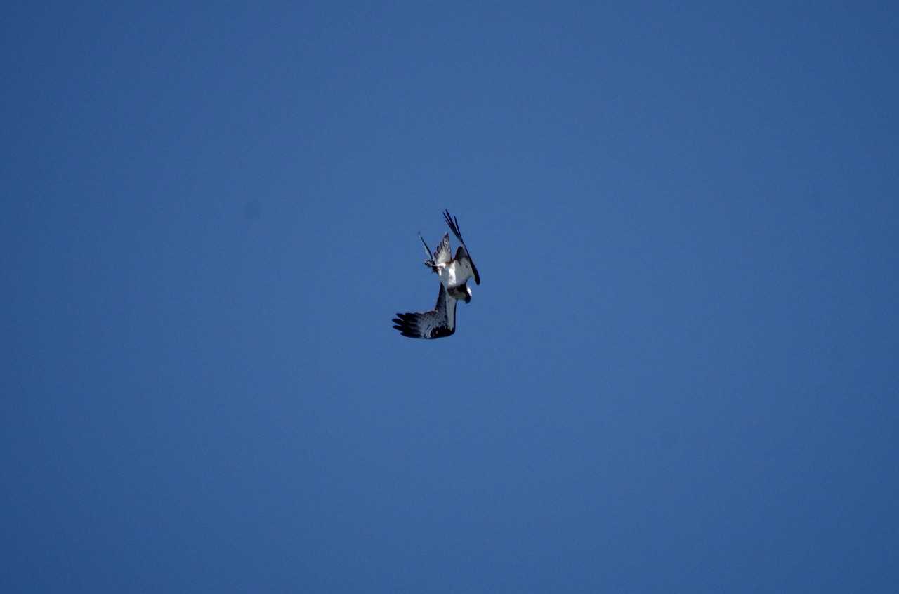求愛飛行をする雄のミサゴ。絶え間なく鳴き続ける。