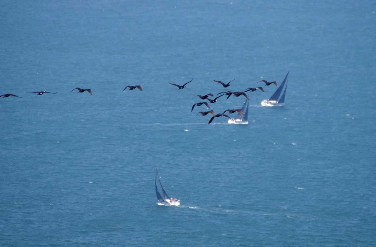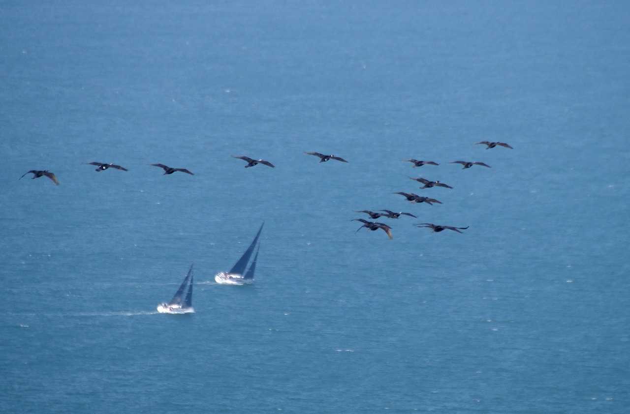 カワウの編隊飛行。