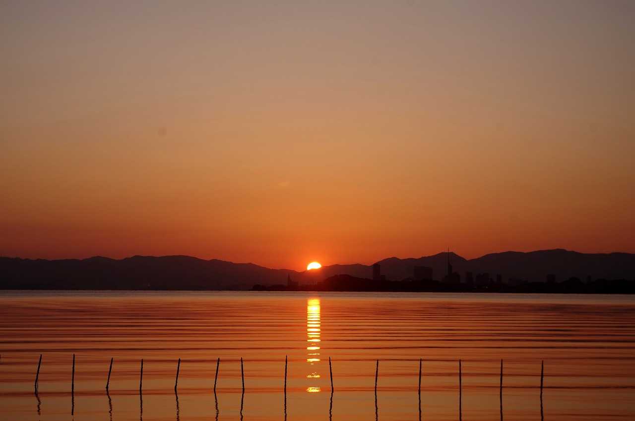 今津橋の手前で日の出を迎えた。6時15分頃に日が出て、益々夜明けが早くなって来た。