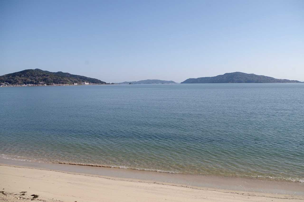 波静かな博多湾。右が能古島、中央が志賀島、左が毘沙門山。