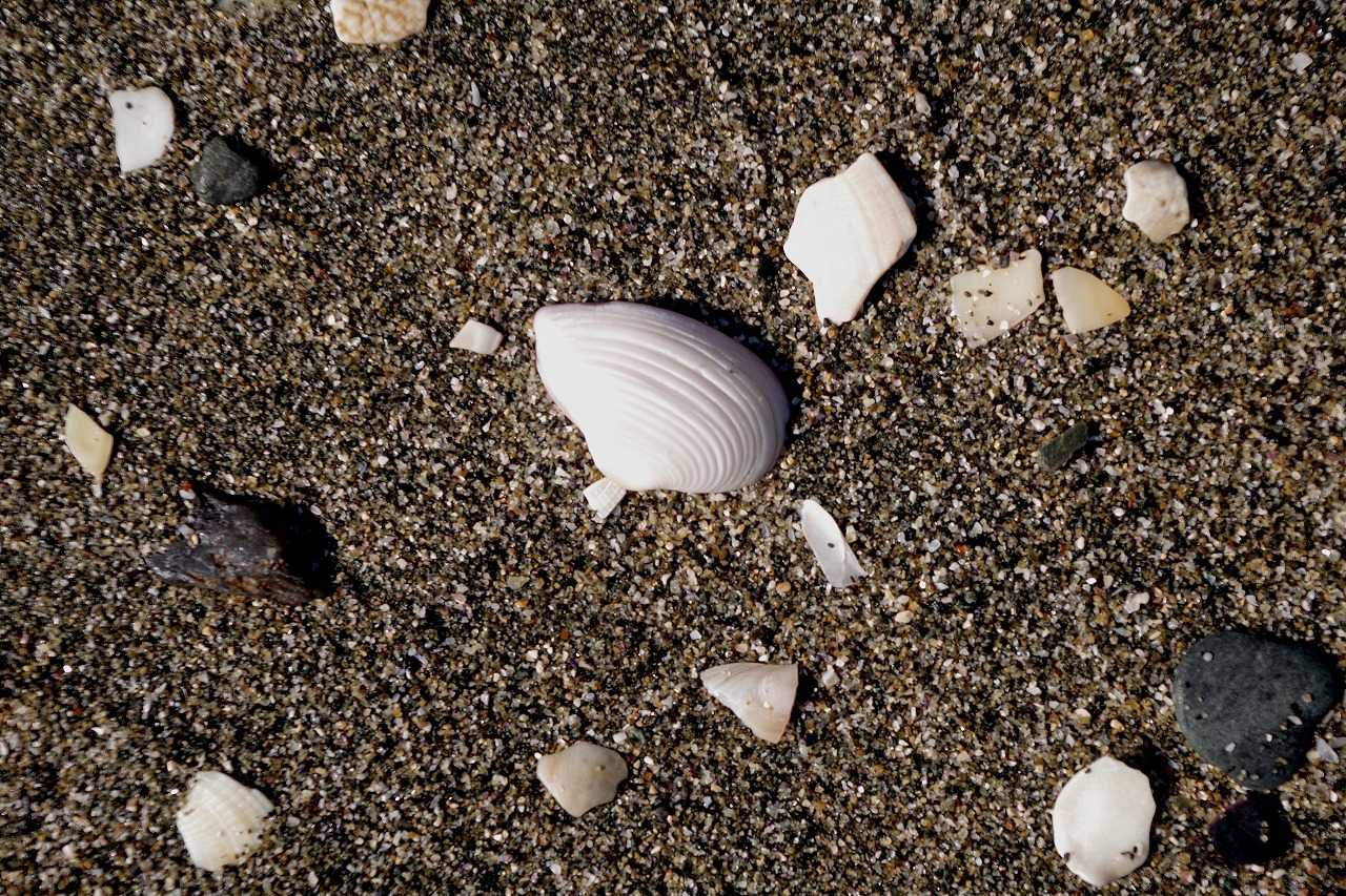 帰りに今津浜崎で貝殻を拾う。