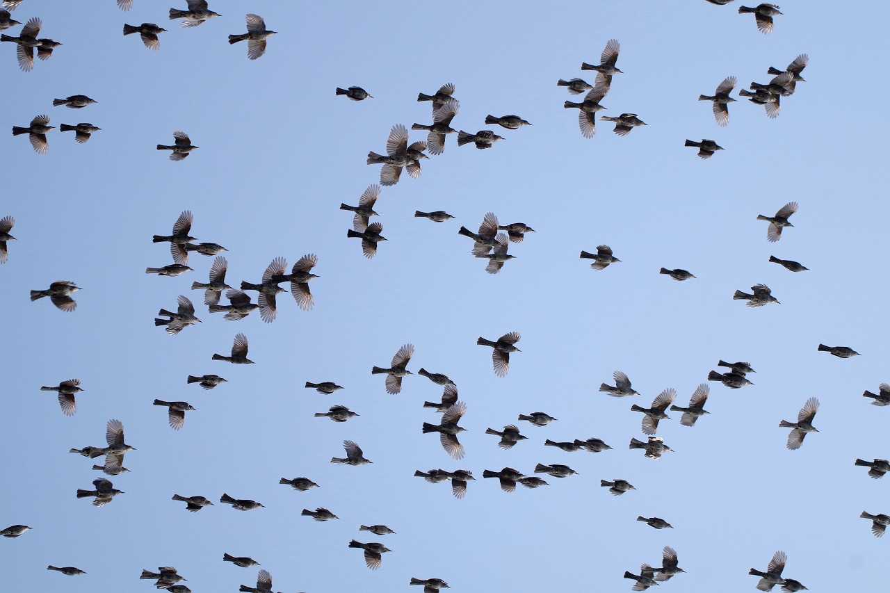 唐泊のヒヨドリの群れ。この春初めて見た。