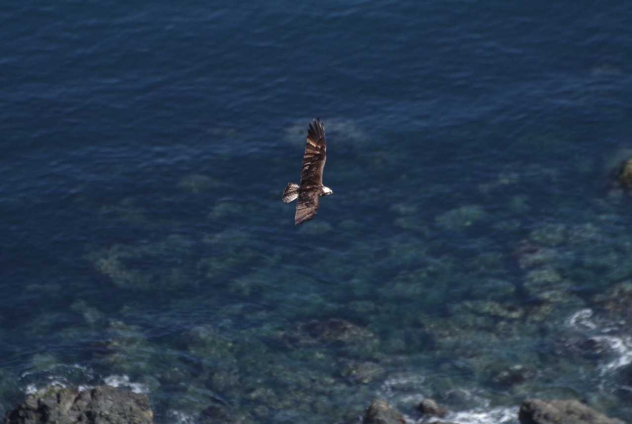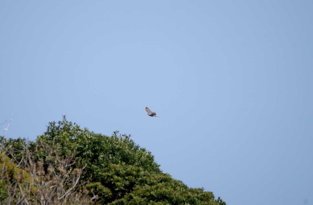 ハヤブサ。決定的なハンティング場面を見ることは出来ず、海岸から山に登った。